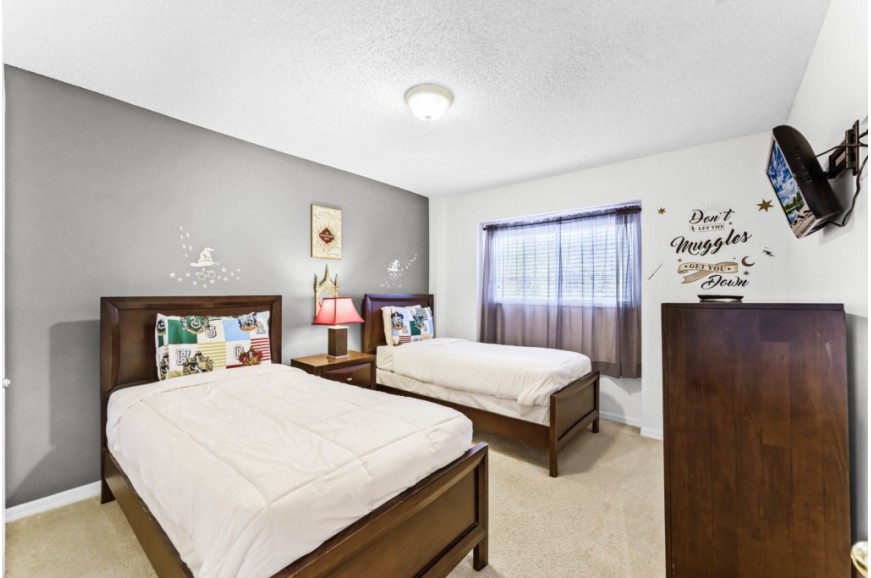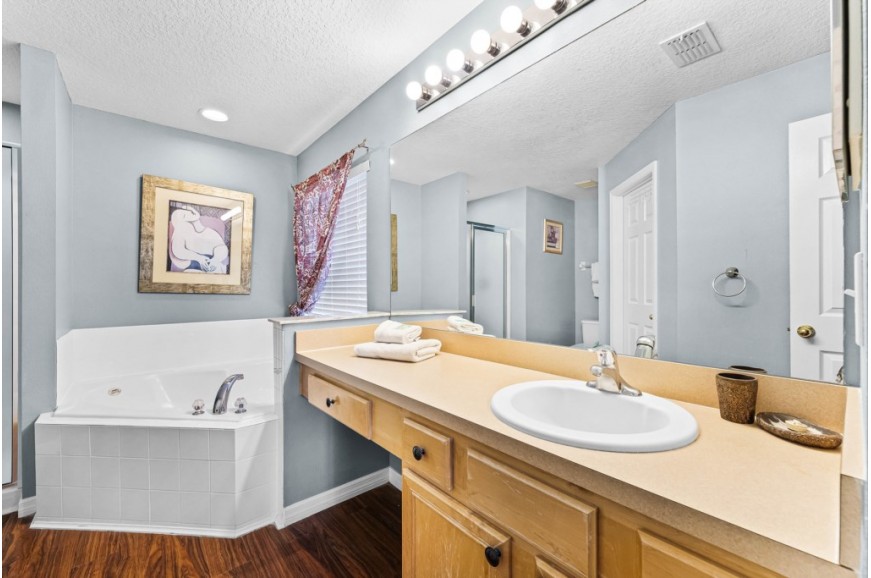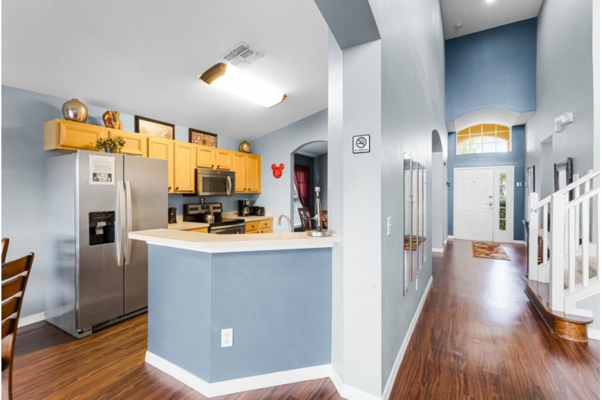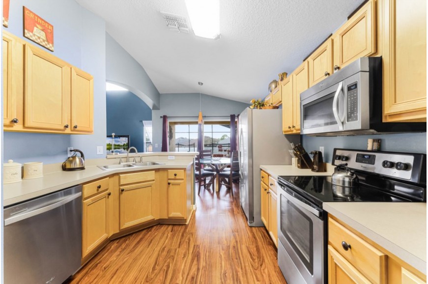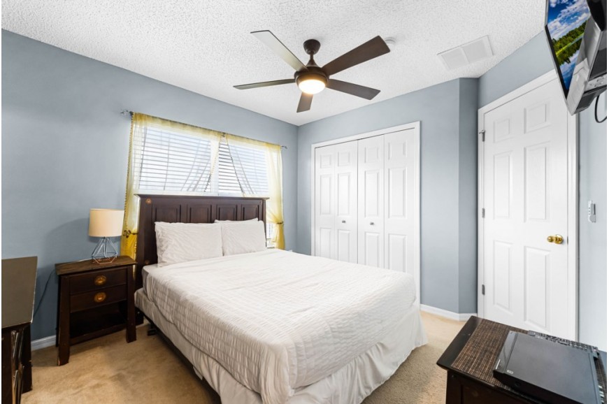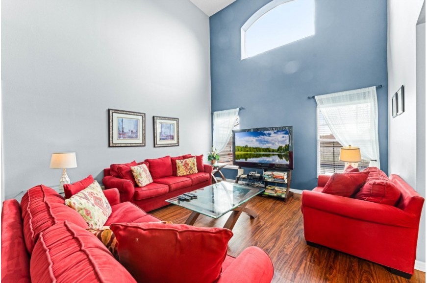 Emerald Island Resort - Kissimmee, Florida is a resort paradise located 2.5 miles from the area's main attraction, Walt Disney World. During your stay, you will enjoy this well-appointed townhome that has been designed and decorated to provide you and your family an abundance of luxury amenities and leaves you well equipped to vacation with all the usual items you would expect to find at home. Emerald Island Resort is only a short 25-minute drive from the Orlando International Airport and is situated central to all of Orlando’s famous attractions. The resorts amenities include a large clubhouse, resort pool with spa, fitness center, sauna and steam room, sand volleyball, tennis courts, game room, children's playground, and BBQ/picnic area. This spacious 5 bedroom holiday villa can comfortably accommodate a larger family or group of up to 10 people.