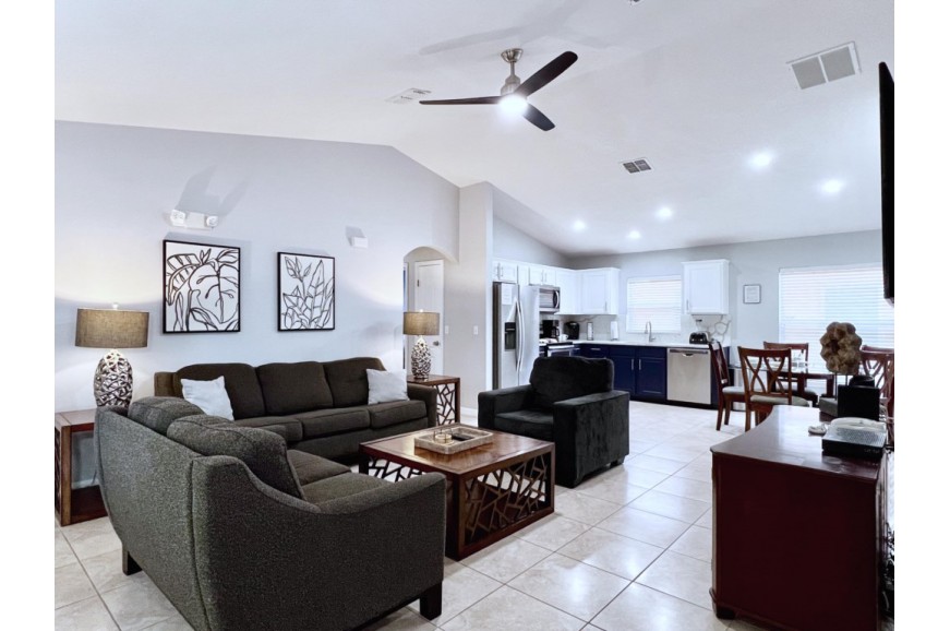 Sandy Ridge - Davenport, Florida is an upscale community located just 7 miles from Walt Disney World. This neighborhood sits nestled just outside of Orlando, Florida and has quickly become one of the most desired resorts in the Orlando area. During your stay, you will enjoy this well-appointed home that has been designed and decorated to provide you and your family an abundance of luxury amenities and leaves you well equipped to vacation with all the usual items you would expect to find at home. Sandy Ridge is only a 25-minute drive from the Orlando International Airport and is situated central to all if Orlando’s famous attractions. This spacious 4 bedroom holiday villa can comfortably accommodate a larger family or group of up to 8 people.