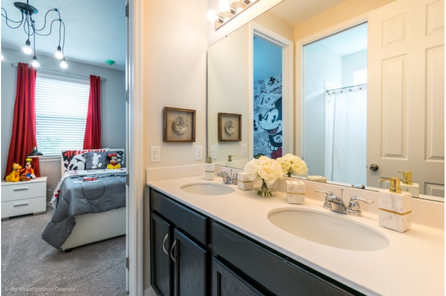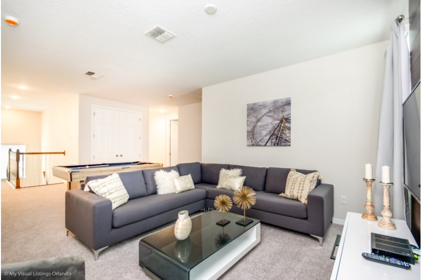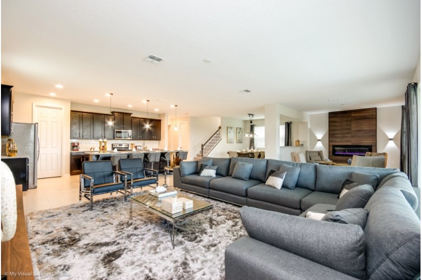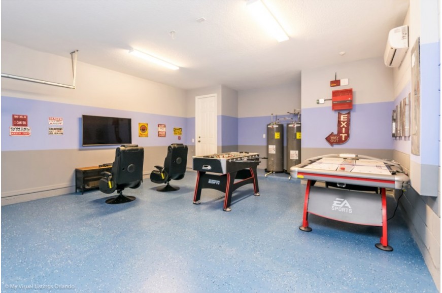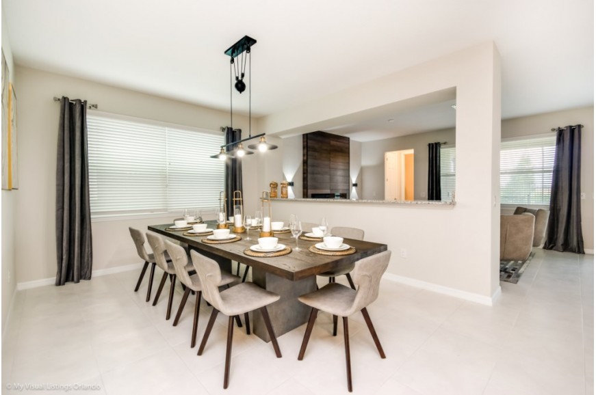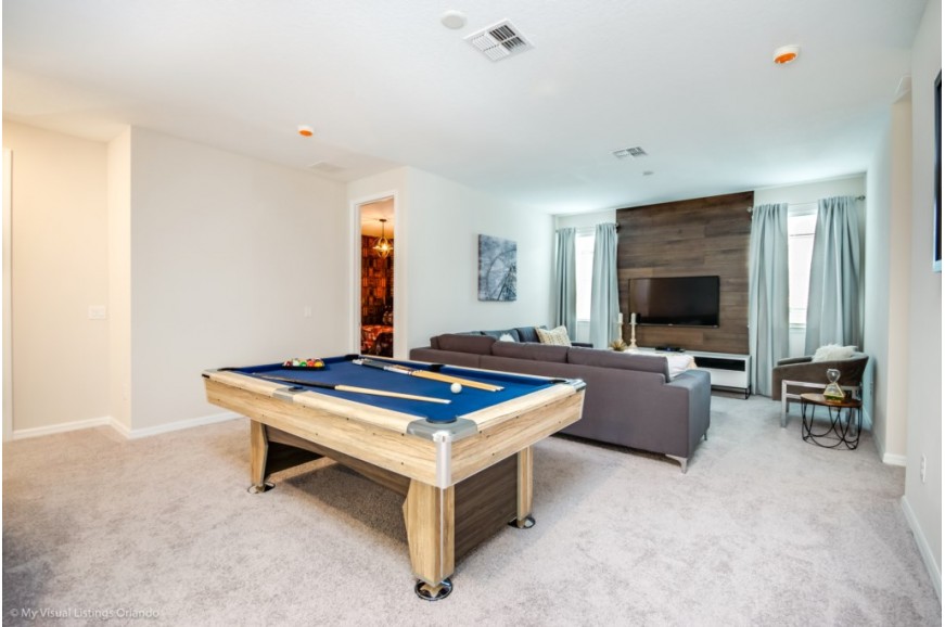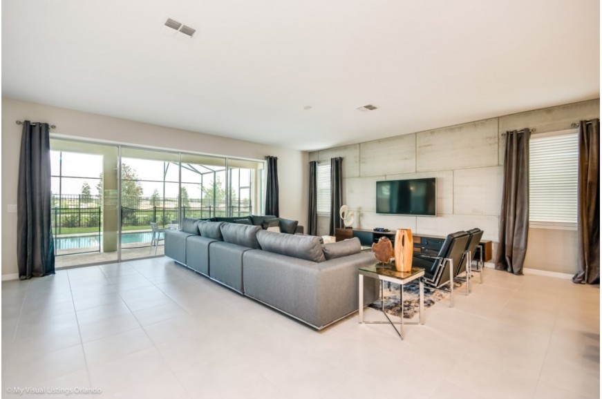 Solara Resort - Kissimmee, Florida is an upscale community currently under development just 7 miles from Walt Disney World. This gated resort community sits nestled just outside of Orlando, Florida. During your stay, you will enjoy this well-appointed home that has been designed and decorated to provide you and your family an abundance of luxury amenities and leaves you well equipped to vacation with all the usual items you would expect to find at home. The resort is only a 30-minute drive from the Orlando International Airport and is situated central to all of Orlando’s famous attractions. The resort boasts an expansive clubhouse which includes a grand pool, complete with surfing simulator, cabanas, pool bar, children's playground, sand volleyball court, basketball court, and soccer field. Inside the clubhouse sits the lounge, bar & grill, fitness center, business center, and sundries store. This spacious 9 bedroom holiday villa can comfortably accommodate a larger family or group of up to 18 people.