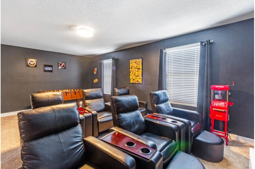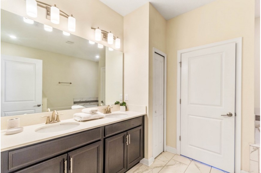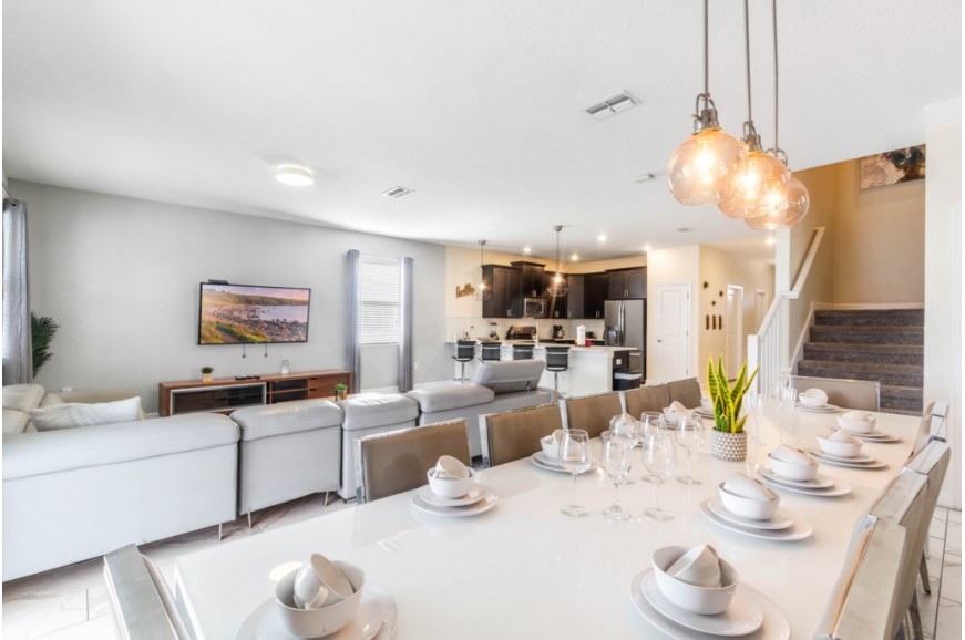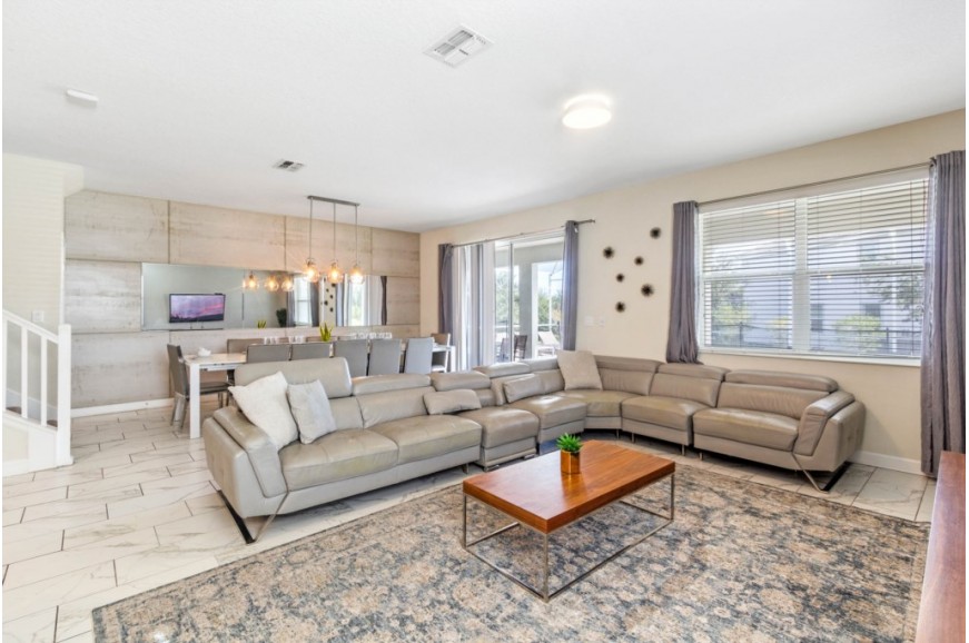 The Retreat at Champions Gate - Kissimmee, Florida is a new upscale gated resort community located just 12 miles from Walt Disney World. This luxury home sits nestled just outside of Orlando, Florida, and will quickly become one of the most desired locations in the Orlando area. During your stay, you will enjoy this well-appointed home that has been designed and decorated to provide you and your family with an abundance of luxury amenities and leaves you well-equipped to vacation with all the usual items you would expect to find at home. The Retreat at Champions Gate is only a 30-minute drive from the Orlando International Airport and is situated central to all of Orlando’s famous attractions. This spacious 8-bedroom holiday villa can comfortably accommodate a larger family or group of up to 16 people.