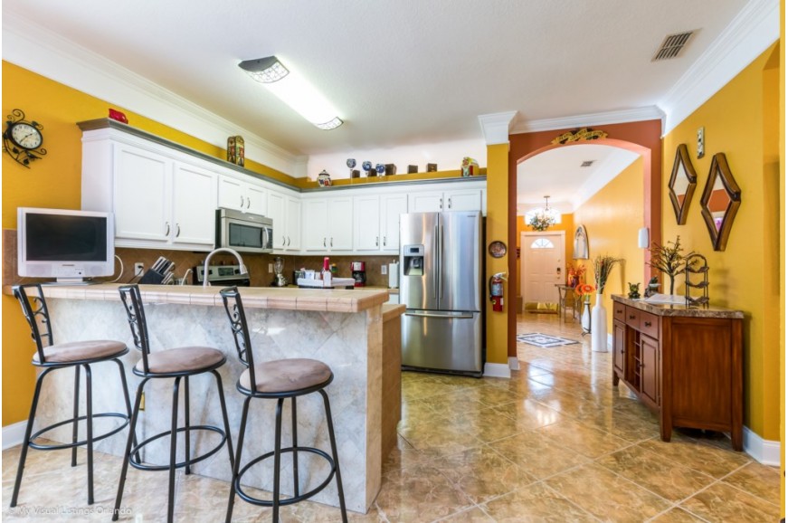 Highlands Reserve - Davenport, Florida is an upscale community located just 7 miles from Walt Disney World. This golf resort community sits nestled just outside of Orlando, Florida and has quickly become one of the most desired resorts in the Orlando area. During your stay, you will enjoy this well-appointed home that has been designed and decorated to provide you and your family an abundance of luxury amenities and leaves you well equipped to vacation with all the usual items you would expect to find at home. Highlands Reserve is only a 30-minute drive from the Orlando International Airport and is situated central to all of Orlando’s famous attractions. The community is situated on the Highlands Reserve Golf Course. Amenities include a swimming pool, tennis courts, and a children's playground. This spacious 4 bedroom holiday villa can comfortably accommodate a larger family or group of up to 8 people.