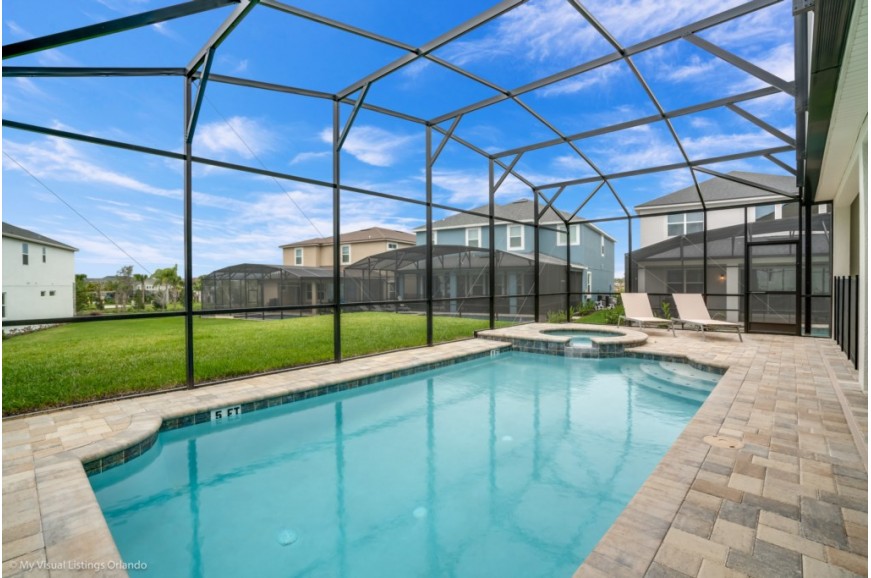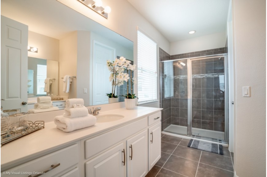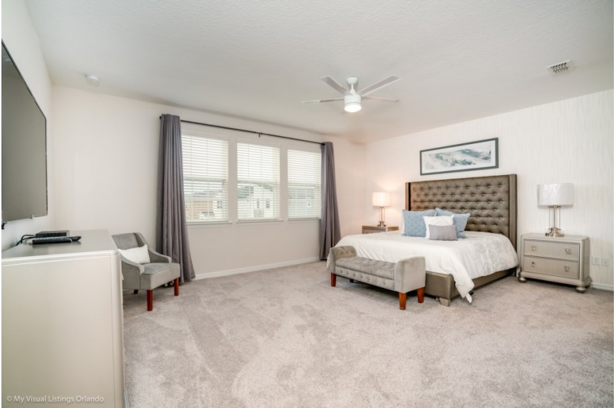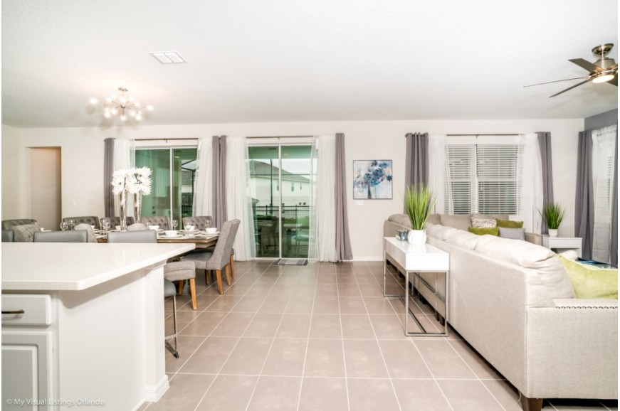 Solara Resort - Kissimmee, Florida is an upscale community currently under development just 7 miles from Walt Disney World. This gated resort community sits nestled just outside of Orlando, Florida. During your stay, you will enjoy this well-appointed home that has been designed and decorated to provide you and your family an abundance of luxury amenities and leaves you well equipped to vacation with all the usual items you would expect to find at home. The resort is only a 30-minute drive from the Orlando International Airport and is situated central to all of Orlando’s famous attractions. The resort boasts an expansive clubhouse which includes a grand pool, complete with surfing simulator, cabanas, pool bar, children's playground, sand volleyball court, basketball court, and soccer field. Inside the clubhouse sits the lounge, bar & grill, fitness center, business center, and sundries store. This spacious 5 bedroom holiday villa can comfortably accommodate a larger family or group of up to 10 people.