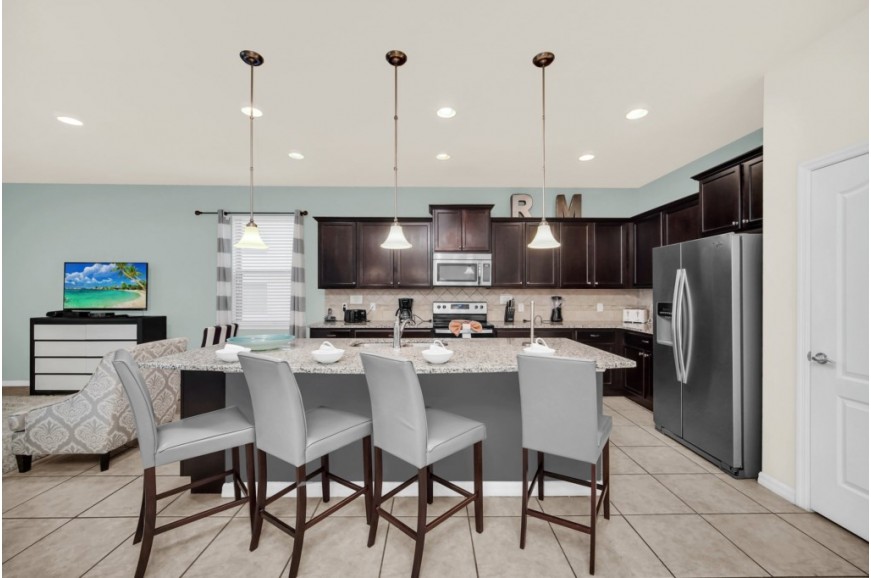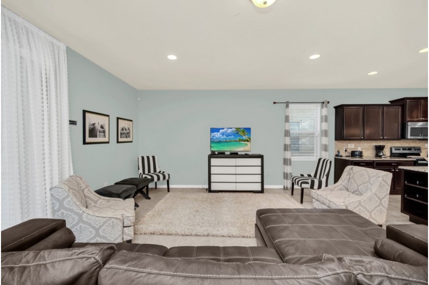 Windsor at Westside - Kissimmee, Florida is an upscale gated community located just 10 minutes from Walt Disney World. This luxury home sits nestled just outside of Orlando, Florida and has quickly become one of the most desired locations in the Orlando area. During your stay, you will enjoy this well-appointed home that has been designed and decorated to provide you and your family an abundance of luxury amenities and leaves you well equipped to vacation with all the usual items you would expect to find at home. Windsor at Westside is only a 30-minute drive from the Orlando International Airport and is situated central to all of Orlando’s famous attractions. This spacious 8 bedroom holiday villa can comfortably accommodate a larger family or group of up to 16 people.