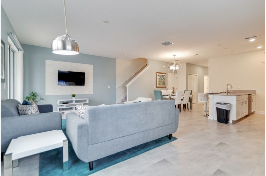 The Retreat at Champions Gate - Kissimmee, Florida is a new upscale gated resort community located just 12 miles from Walt Disney World. This luxury townhome sits nestled just outside of Orlando, Florida and will quickly become one of the most desired locations in the Orlando area. During your stay, you will enjoy this well-appointed home that has been designed and decorated to provide you and your family an abundance of luxury amenities and leaves you well equipped to vacation with all the usual items you would expect to find at home. The Retreat at Champions Gate is only a 30-minute drive from the Orlando International Airport and is situated central to all of Orlando’s famous attractions. This spacious 5 bedroom town home can comfortably accommodate a larger family or group of up to 10 people.