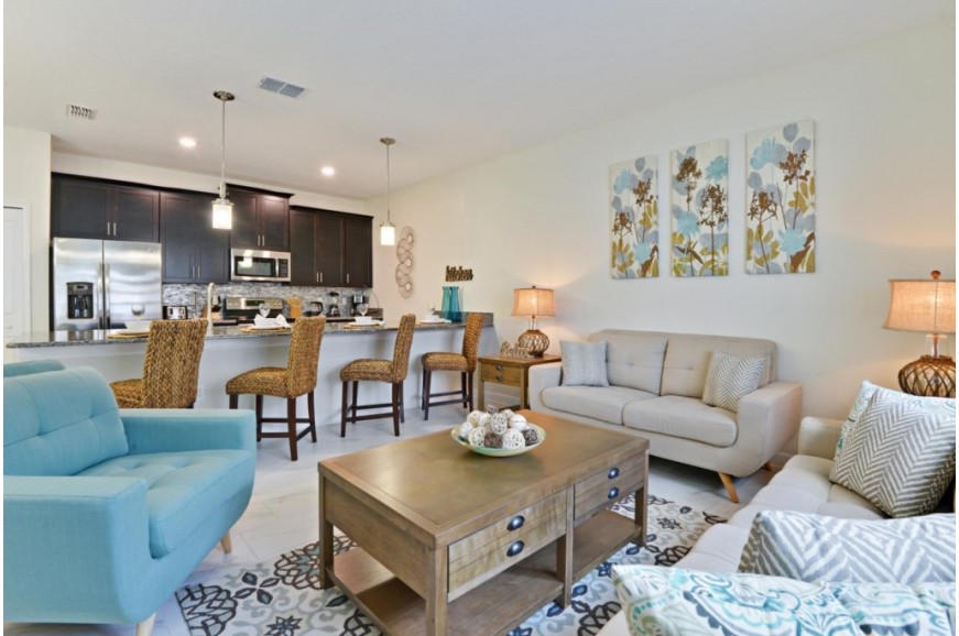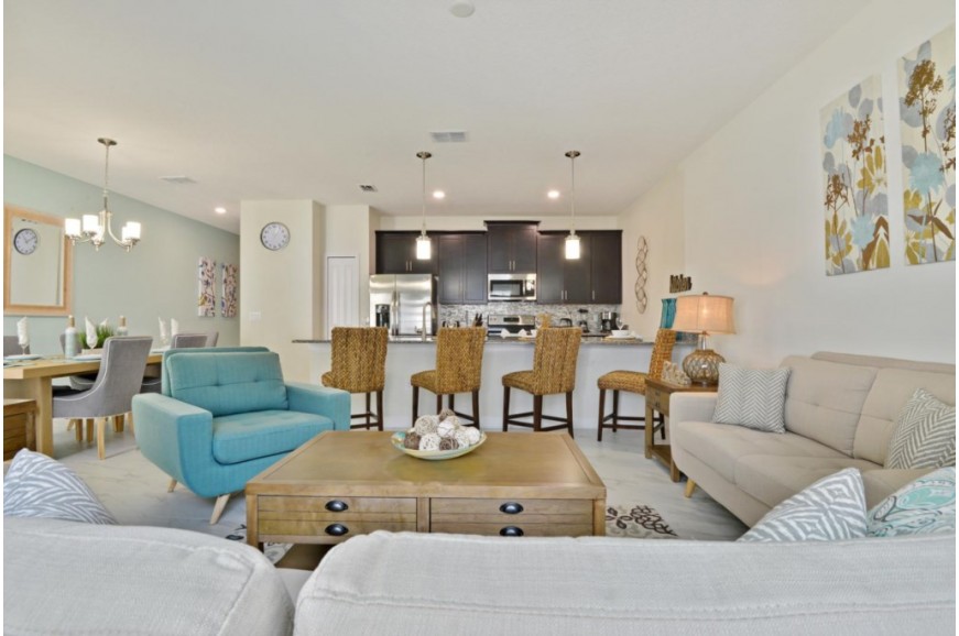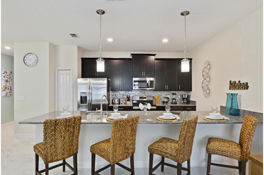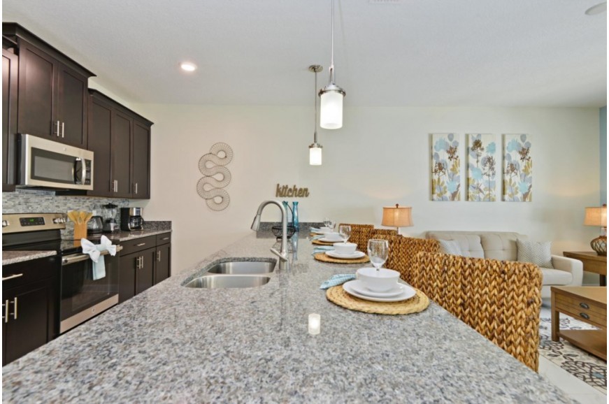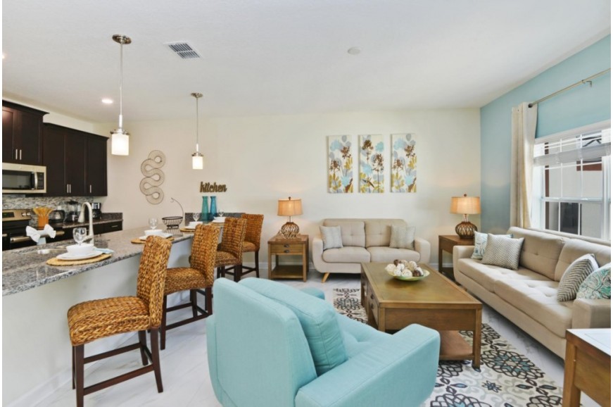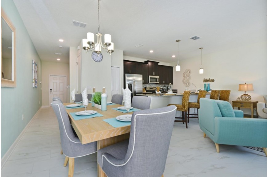 The Retreat at Champions Gate - Kissimmee, Florida is a new upscale gated resort community located just 12 miles from Walt Disney World. This luxury townhome sits nestled just outside of Orlando, Florida and will quickly become one of the most desired locations in the Orlando area. During your stay, you will enjoy this well-appointed home that has been designed and decorated to provide you and your family an abundance of luxury amenities and leaves you well equipped to vacation with all the usual items you would expect to find at home. The Retreat at Champions Gate is only a 30-minute drive from the Orlando International Airport and is situated central to all of Orlando’s famous attractions. This spacious 4 bedroom holiday town home can comfortably accommodate a larger family or group of up to 8 people.