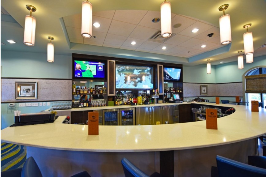 Guests enjoy a bounty of resort amenities at the Oasis Club at ChampionsGate, from tropical swimming pools, meandering lazy river, children’s water playground and splash pad. Steps away from the bustle of water fun is a secluded quiet pool and spa. Begin and end your day relaxing under the shade of a private cabana. Enjoy a tropical libation at the poolside tiki bar and grab a bite at the Grille Room and Bar.