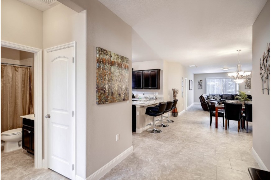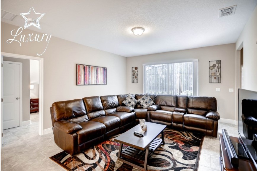 Solterra Resort - Davenport, Florida is a paradise located only 15 minutes from the area's main attraction... Walt Disney World. This luxury resort sits nestled just outside of Orlando, Florida and has quickly become one of the most desired resorts in the Orlando area. During your stay, you will enjoy this well-appointed home that has been designed and decorated to provide you and your family an abundance of luxury amenities and leaves you well equipped to vacation with all the usual items you would expect to find at home. Solterra Resort is only a 30-minute drive from the Orlando International Airport and is situated central to all if Orlando’s famous attractions. The resorts amenities include 6700 square foot clubhouse, swimming pool, spa, fitness center, business center with Internet, volleyball, tennis, children's playground and picnic area This spacious 5 bedroom pool home can comfortably accommodate a larger family or group of up to 10 people.