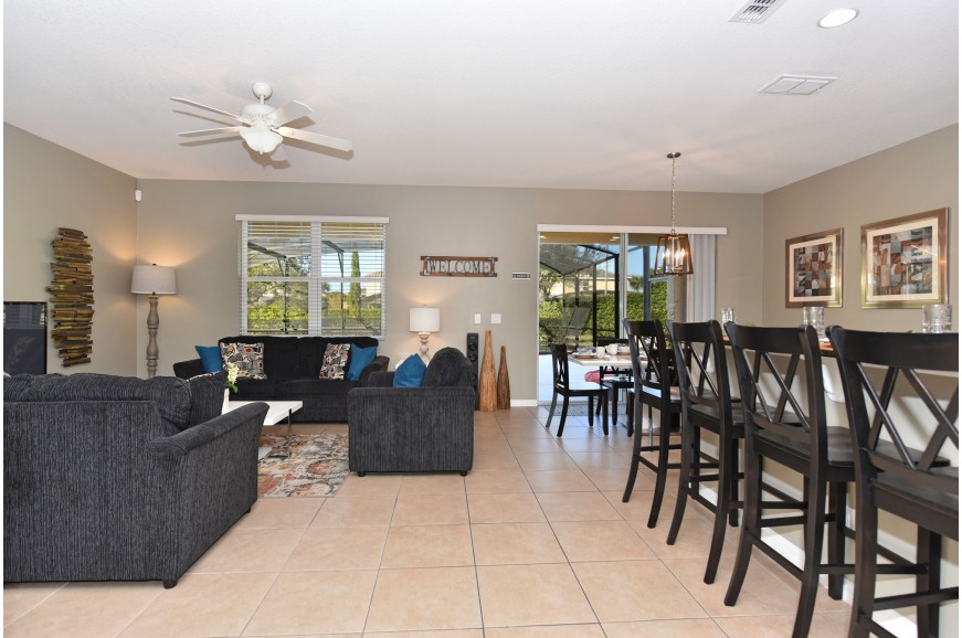 Solterra Resort - Davenport, Florida is a paradise located only 15 minutes from the area's main attraction... Walt Disney World. This luxury resort sits nestled just outside of Orlando, Florida and has quickly become one of the most desired resorts in the Orlando area. During your stay, you will enjoy this well-appointed home that has been designed and decorated to provide you and your family an abundance of luxury amenities and leaves you well equipped to vacation with all the usual items you would expect to find at home. Solterra Resort is only a 30-minute drive from the Orlando International Airport and is situated central to all of Orlando’s famous attractions. The resorts amenities include 6700 square foot clubhouse, swimming pool, spa, fitness center, business center with Internet, volleyball, Tennis, children's playground and picnic area This spacious 7 bedroom holiday villa can comfortably accommodate a larger family or group of up to 14 people.