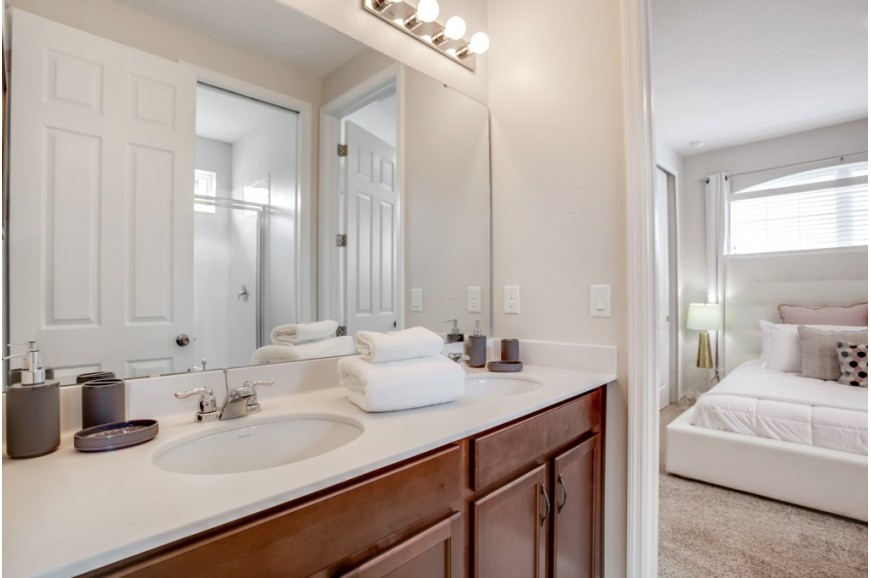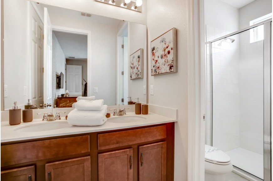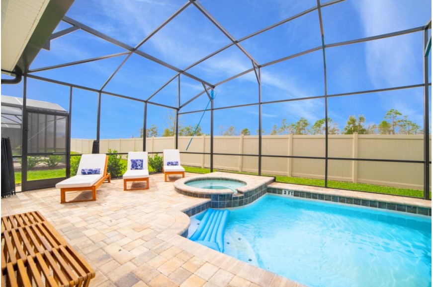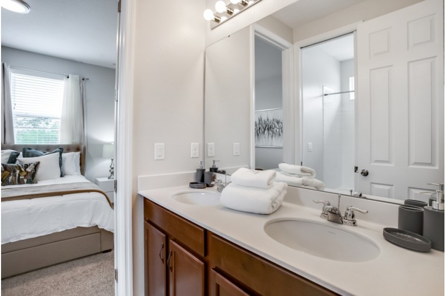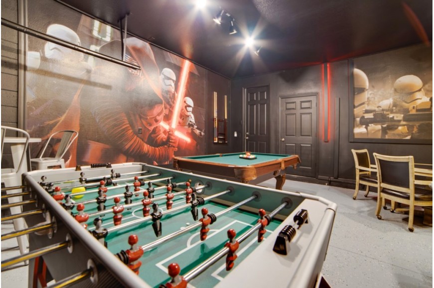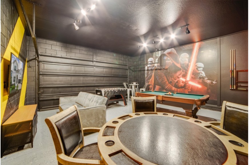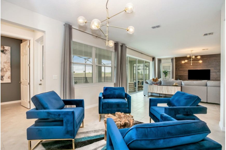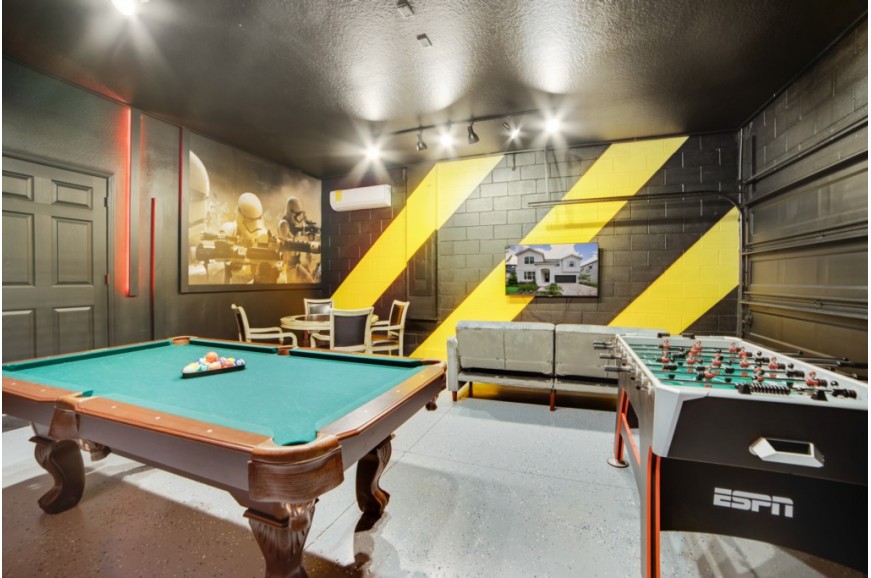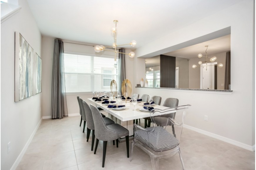 Solara Resort - Kissimmee, Florida is an upscale community currently under development just 7 miles from Walt Disney World. This gated resort community sits nestled just outside of Orlando, Florida. During your stay, you will enjoy this well-appointed home that has been designed and decorated to provide you and your family an abundance of luxury amenities and leaves you well equipped to vacation with all the usual items you would expect to find at home. The resort is only a 30-minute drive from the Orlando International Airport and is situated central to all of Orlando’s famous attractions. The resort boasts an expansive clubhouse which includes a grand pool, complete with surfing simulator, cabanas, pool bar, children's playground, sand volleyball court, basketball court, and soccer field. Inside the clubhouse sits the lounge, bar & grill, fitness center, business center, and sundries store. This spacious 9 bedroom holiday villa can comfortably accommodate a larger family or group of up to 18 people.