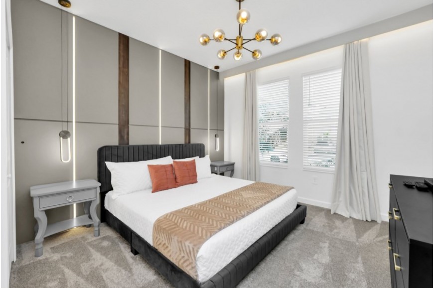 The Retreat at Champions Gate - Kissimmee, Florida is a new upscale gated resort community located just 12 miles from Walt Disney World. This luxury home sits nestled just outside of Orlando, Florida, and will quickly become one of the most desired locations in the Orlando area. During your stay, you will enjoy this well-appointed home that has been designed and decorated to provide you and your family an abundance of luxury amenities and leaves you well equipped to vacation with all the usual items you would expect to find at home. The Retreat at Champions Gate is only a 30-minute drive from the Orlando International Airport and is situated central to all of Orlando’s famous attractions. This spacious 6 bedroom holiday villa can comfortably accommodate a larger family or group of up to 16 people.