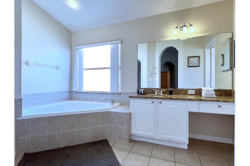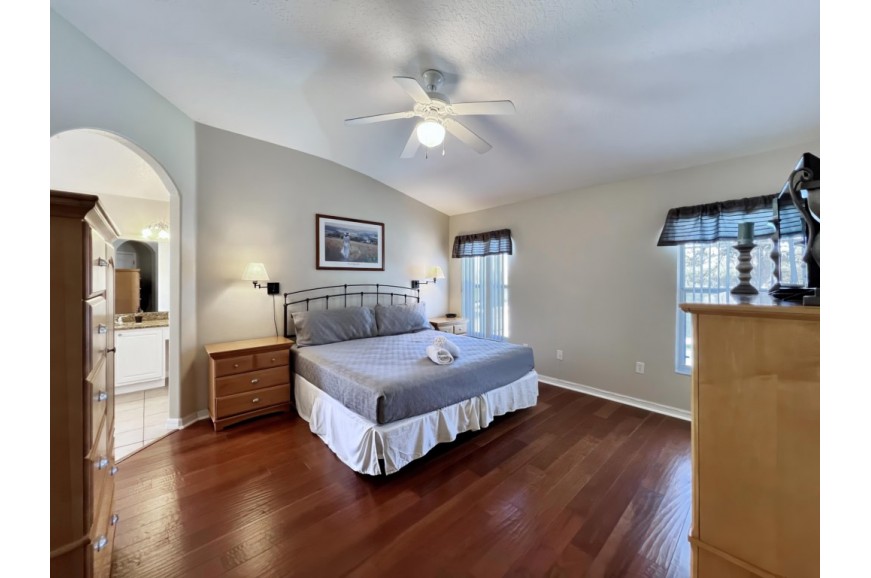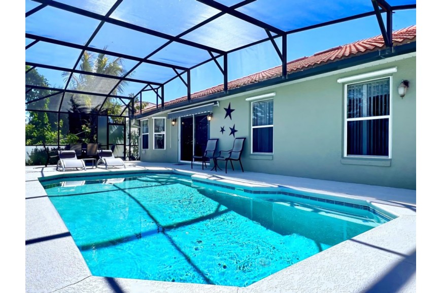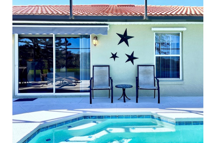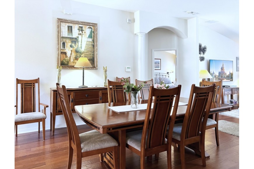 Villa Sol - Orlando is located in a scenic residential area, approximately 15 minutes from the Orlando International Airport. The area is surrounded by large 100-year-old oak trees and is located near East Lake Toho, one of Orlando's largest lakes. There is a Walmart Neighborhood Grocery store and Walgreens pharmacy within a short walking distance. Additional shopping centers, restaurants, and several golf courses are a quick 5 to 10 minutes away. Villa Sol is ideally situated near all the major attractions in Orlando with Disney parks a 15-20 min drive. Over 100 golf courses can be reached in less than a 40-minute drive, the two closest are only 7-9 minutes away. Just 10 minutes from Villa Sol is a leisure center offering Airboat Rides or fishing excursions on East Lake Toho. Cocoa Beach, a wonderful beach on the Atlantic coast (east) with distinct brown sugar sandy beaches, is only a 45-minute drive. Just 90 minutes west, you will come to Tampa and Clearwater on the Gulf of Mexico where you can experience the most beautiful soft white powder sand and gorgeous sunsets from beach restaurants. This spacious 4-bedroom holiday villa can comfortably accommodate a family or group of up to 8 guests.