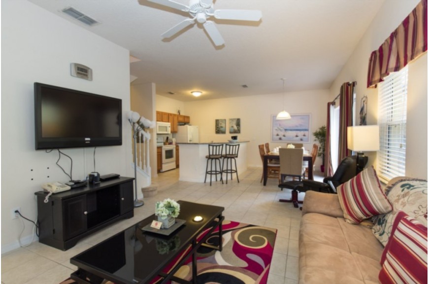 Encantada Resort - Kissimmee, Florida is an upscale gated community located just 4 miles from Walt Disney World. This luxury resort sits nestled just off Hwy 192 in Kissimmee, Florida and is one of the most desired resorts in the Orlando area. During your stay, you will enjoy this well-appointed home that has been designed and decorated to provide you and your family an abundance of luxury amenities and leaves you well equipped to vacation with all the usual items you would expect to find at home. Encantada Resort is only a 25-minute drive from the Orlando International Airport and is situated central to all of Orlando’s famous attractions. The resorts amenities include gated community, with Olympic Size Swimming Pool, Jacuzzi, fishing pier, fitness center, walking trails, clubhouse with arcade games, and an onsite restaurant. Encantada Resort has all the amenities of a five-star hotel or resort, but with the comfort, convenience, and privacy of a private home. This spacious 4 bedroom holiday villa can comfortably accommodate a larger family or group of up to 8 people.