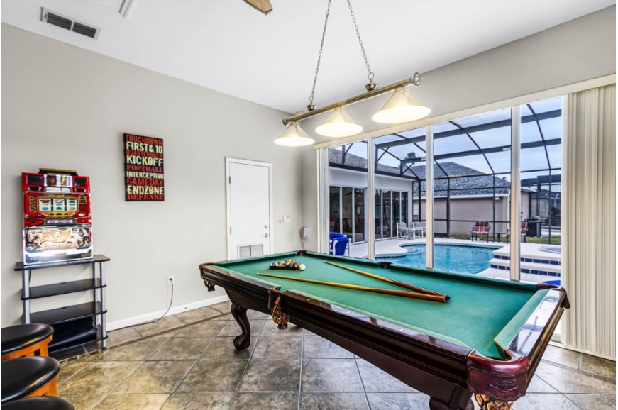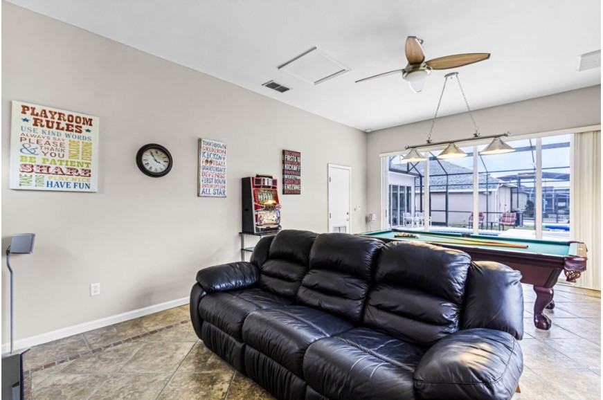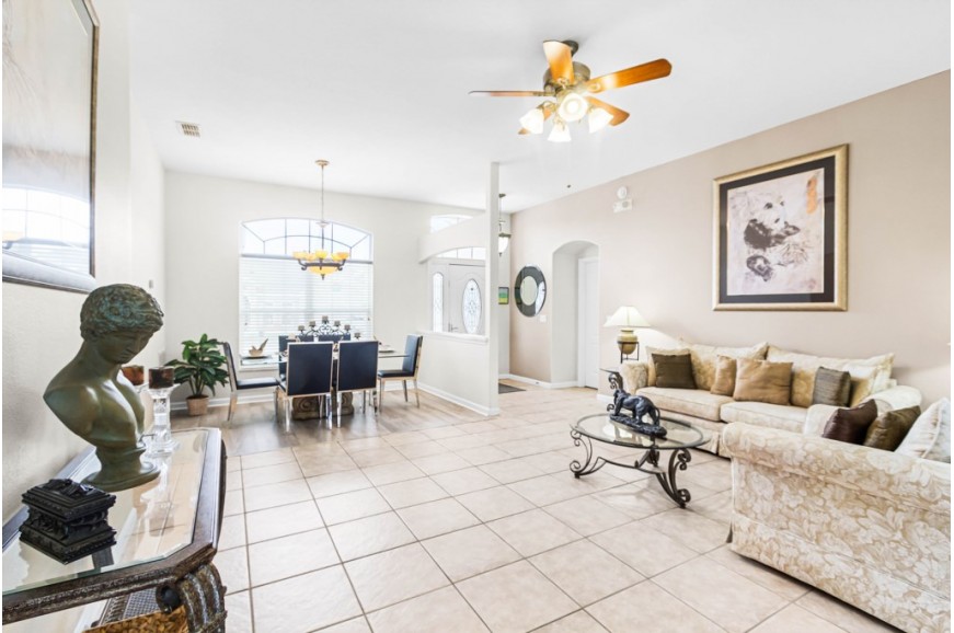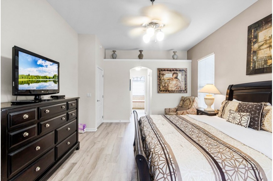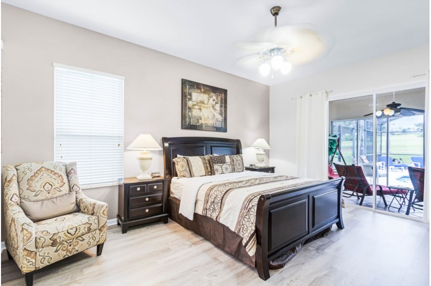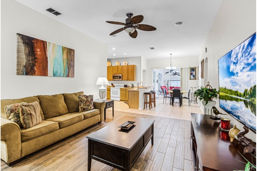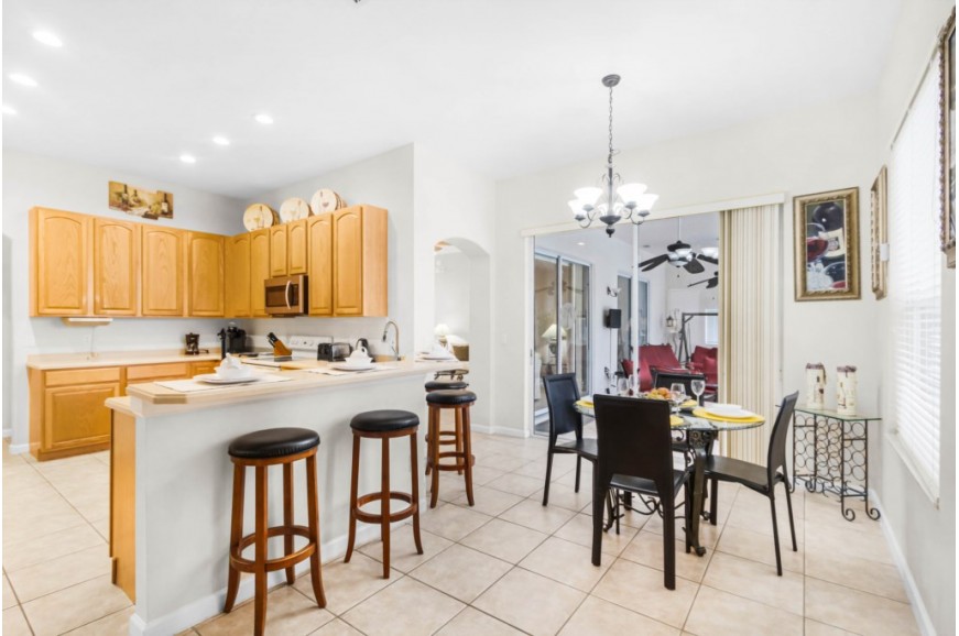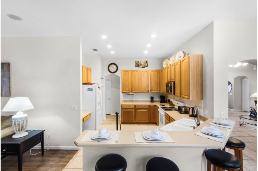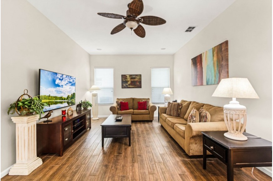 Highlands Reserve - Davenport, Florida is an upscale community located just 7 miles from Walt Disney World. This golf resort community sits nestled just outside of Orlando, Florida, and has quickly become one of the most desired resorts in the Orlando area. During your stay, you will enjoy this well-appointed home that has been designed and decorated to provide you and your family with an abundance of luxury amenities and leave you well-equipped to vacation with all the usual items you would expect to find at home. Highlands Reserve is only a 30-minute drive from the Orlando International Airport and is situated central to all of Orlando’s famous attractions. The community is situated on the Highlands Reserve Golf Course. Amenities include a swimming pool, tennis courts, and a children's playground. This spacious 4-bedroom holiday villa can comfortably accommodate a larger family or group of up to 8 people.