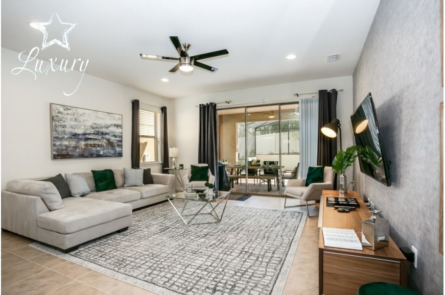 Windsor at Westside - Kissimmee, Florida is an upscale gated community located just 10 minutes from Walt Disney World. This luxury home sits nestled just outside of Orlando, Florida and has quickly become one of the most desired locations in the Orlando area. During your stay, you will enjoy this well-appointed home that has been designed and decorated to provide you and your family an abundance of luxury amenities and leaves you well equipped to vacation with all the usual items you would expect to find at home. Windsor at Westside is only a 30-minute drive from the Orlando International Airport and is situated central to all of Orlando’s famous attractions. This spacious 6 bedroom holiday villa can comfortably accommodate a larger family or group of up to 12 people.