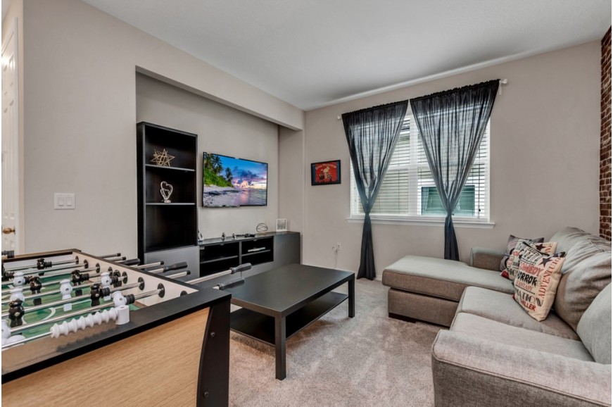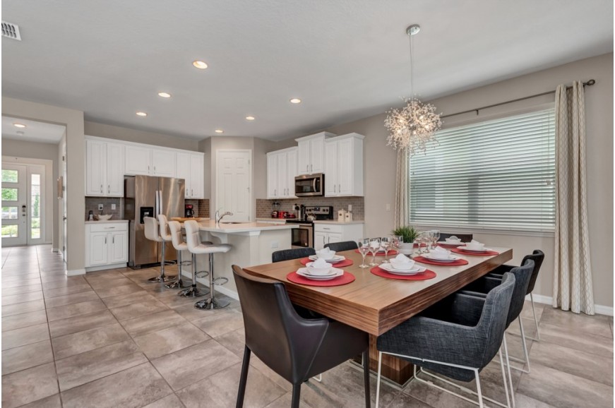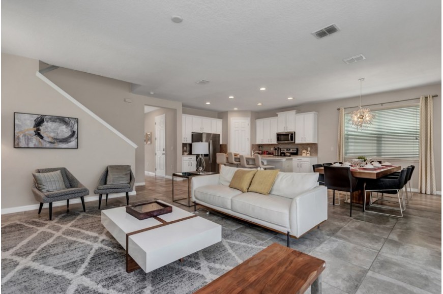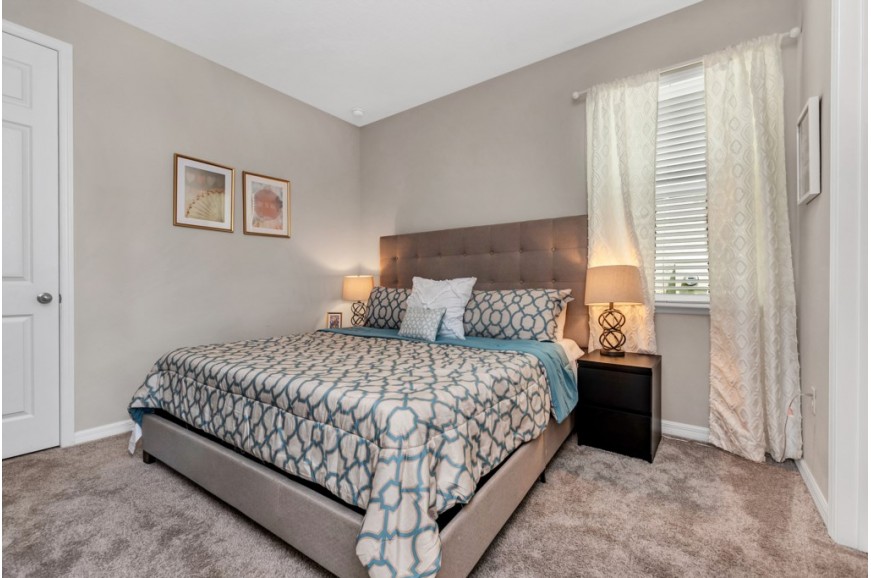 Solara Resort - Kissimmee, Florida is an upscale community currently under development just 7 miles from Walt Disney World. This gated resort community sits nestled just outside of Orlando, Florida. During your stay, you will enjoy this well-appointed home that has been designed and decorated to provide you and your family an abundance of luxury amenities and leaves you well equipped to vacation with all the usual items you would expect to find at home. The resort is only a 30-minute drive from the Orlando International Airport and is situated central to all of Orlando’s famous attractions. The resort boasts an expansive clubhouse which includes a grand pool, complete with surfing simulator, cabanas, pool bar, children's playground, sand volleyball court, basketball court, and soccer field. Inside the clubhouse sits the lounge, bar & grill, fitness center, business center, and sundries store. This spacious 4 bedroom holiday villa can comfortably accommodate a larger family or group of up to 8 people.