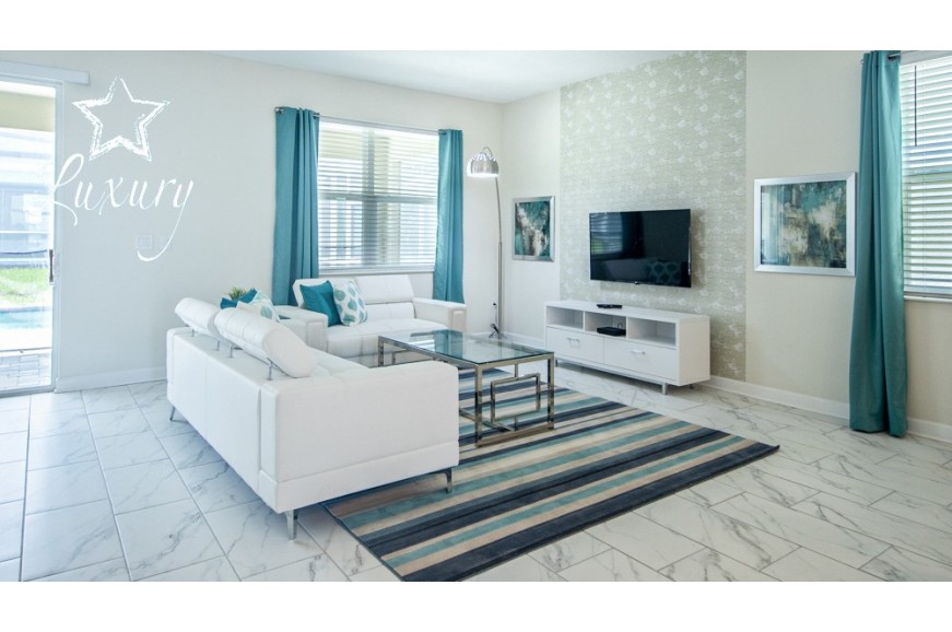 The Retreat at Champions Gate - Kissimmee, Florida is a new upscale gated resort community located just 12 miles from Walt Disney World. This luxury home sits nestled just outside of Orlando, Florida, and will quickly become one of the most desired locations in the Orlando area. During your stay, you will enjoy this well-appointed home that has been designed and decorated to provide you and your family an abundance of luxury amenities and leaves you well equipped to vacation with all the usual items you would expect to find at home. The Retreat at Champions Gate is only a 30-minute drive from the Orlando International Airport and is situated central to all of Orlando’s famous attractions. This spacious 7 bedroom holiday villa can comfortably accommodate a larger family or group of up to 14 people.