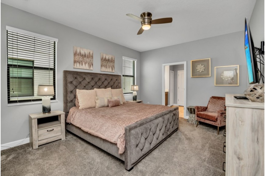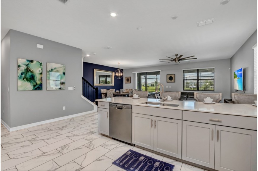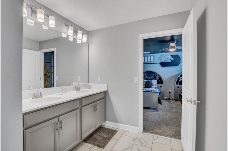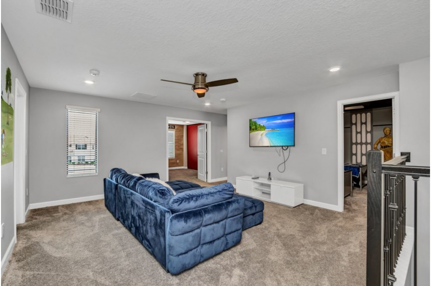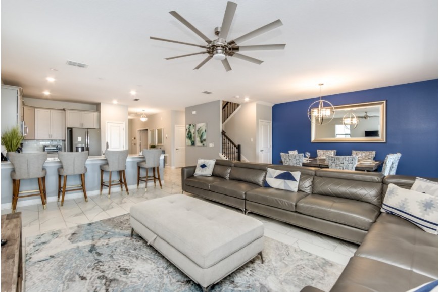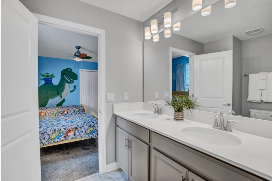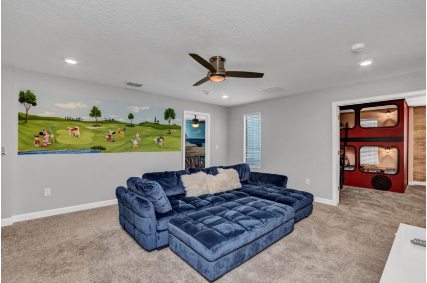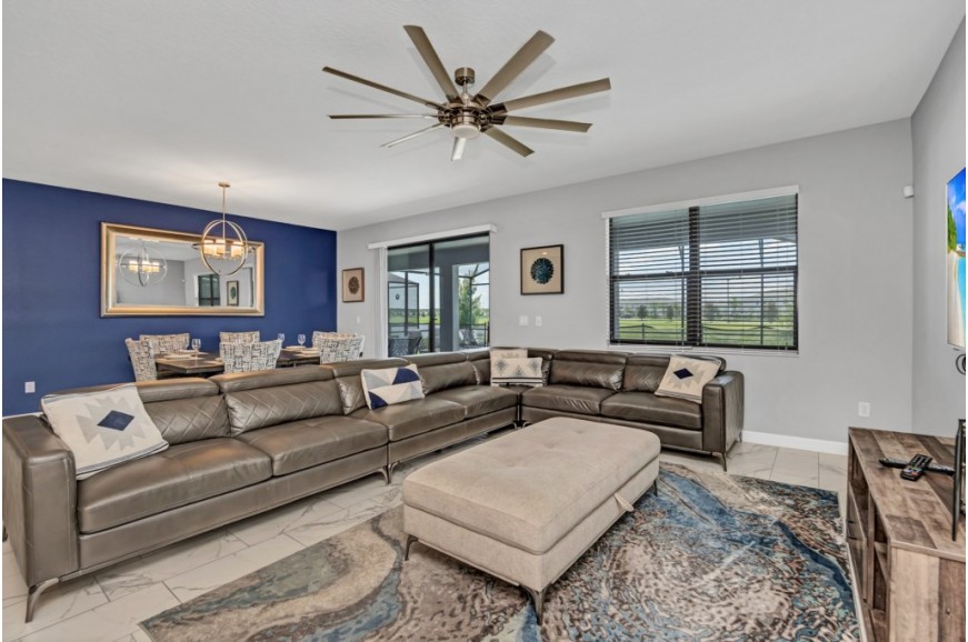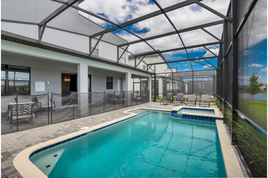 Storey Lake - Kissimmee, Florida is a brand new vacation community located just 4 miles from the magical world of Disney and just minutes to Universal, Sea World, and the many water parks in the area. Central Florida is also home to some of the nation's top-rated golf courses and many are within a 10-minute drive of Storey Lake. The prime location lends itself to the premier shopping corridor including the famed Millennia, top restaurants, and the world-renowned town of Celebration inspired by Disney.  Storey Lake is also a 30-minute drive from the Orlando International Airport. The resort offers the best in family fun and is host to a wide variety of amenities and activities. This spacious 9 bedroom holiday villa can comfortably accommodate a large family or group of up to 18 guests.