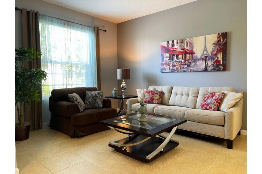 Solterra Resort - Davenport, Florida is a paradise located only 15 minutes from the area's main attraction... Walt Disney World. This luxury resort sits nestled just outside of Orlando, Florida, and has quickly become one of the most desired resorts in the Orlando area. During your stay, you will enjoy this well-appointed home that has been designed and decorated to provide you and your family an abundance of luxury amenities and leaves you well equipped to vacation with all the usual items you would expect to find at home. Solterra Resort is only a 30-minute drive from the Orlando International Airport and is situated central to all if Orlando’s famous attractions. The resort's amenities include a 6700 square foot clubhouse, swimming pool, spa, fitness center, business center with Internet, volleyball, Tennis, children's playground, and picnic area This spacious 6 bedroom holiday villa can comfortably accommodate a larger family or group of up to 12 people.