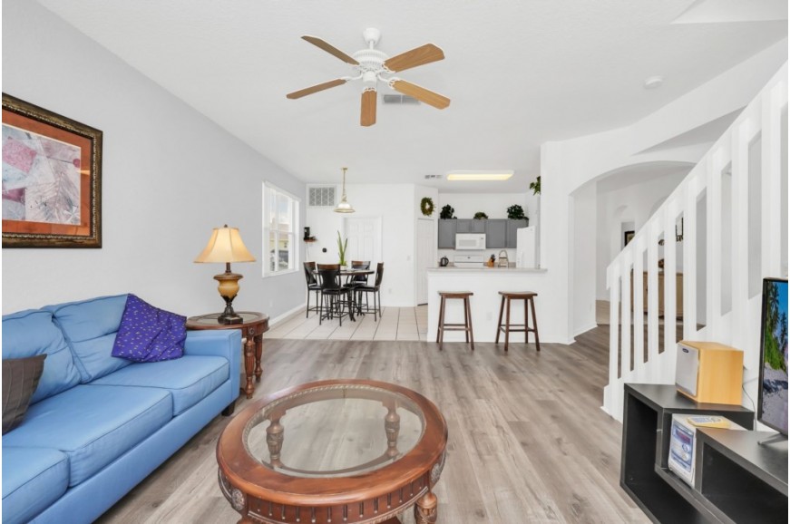 Highlands Reserve - Davenport, Florida is an upscale community located just 7 miles from Walt Disney World. This golf resort community sits nestled just outside of Orlando, Florida and has quickly become one of the most desired resorts in the Orlando area. During your stay, you will enjoy this well-appointed home that has been designed and decorated to provide you and your family an abundance of luxury amenities and leaves you well equipped to vacation with all the usual items you would expect to find at home. Highlands Reserve is only a 30-minute drive from the Orlando International Airport and is situated central to all of Orlando’s famous attractions. The community is situated on the Highlands Reserve Golf Course. Amenities include a swimming pool, tennis courts, and a children's playground. This spacious 5 bedroom holiday villa can comfortably accommodate a larger family or group of up to 10 people.