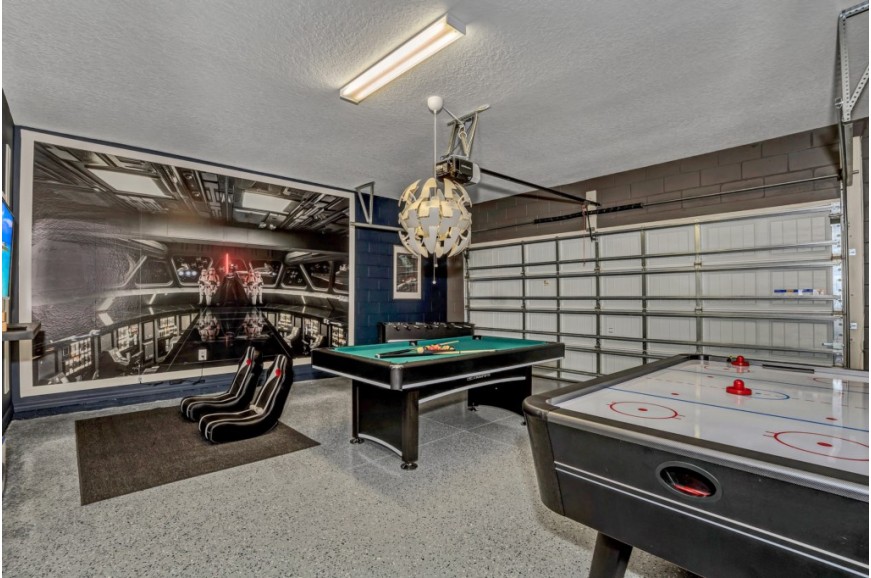 • Game Room with Pool Table, Air Hockey, and Foosball