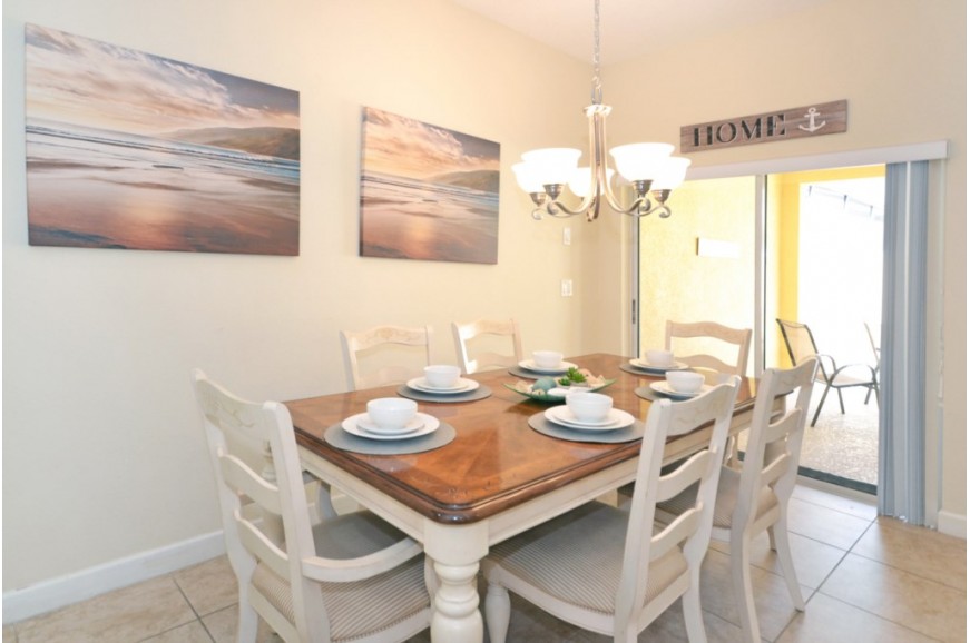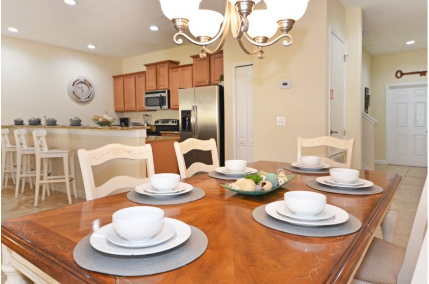 Paradise Palms - Kissimmee, Florida is an upscale gated community located just 5 miles from Walt Disney World. This luxury resort sits nestled just off Hwy 192 in Kissimmee, Florida, and is one of the most desired resorts in the Orlando area. During your stay, you will enjoy this well-appointed home that has been designed and decorated to provide you and your family with an abundance of luxury amenities and leaves you well-equipped to vacation with all the usual items you would expect to find at home. Paradise Palms Resort is only a 25-minute drive from the Orlando International Airport and is situated central to all of Orlando’s famous attractions. The resort's amenities include a gated community, a water park with an Olympic-size swimming Pool, fountains, waterslides, a spa, a separate toddler pool, tennis courts, volleyball, and a children’s park and clubhouse. The Clubhouse has pool tables, ping-pong tables, a video games area, a sundry shop, a fitness room with top-of-the-line fitness equipment, and high high-definition surround sound movie theater. There are other outdoor recreational activities all surrounding the double Olympic-size heated swimming pool creating a relaxing, playful atmosphere for the entire family! Paradise Palms has all the amenities of a five-star hotel or resort but with the comfort, convenience, and privacy of a private home. This spacious 4-bedroom holiday villa can comfortably accommodate a larger family or group of up to 8 people.