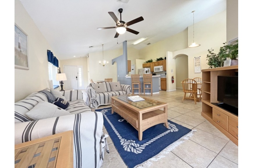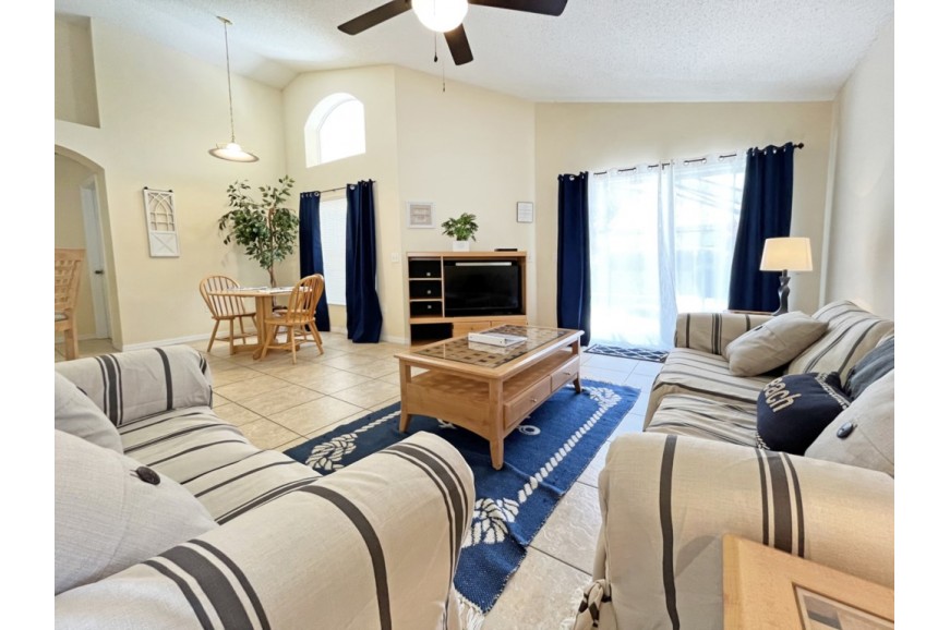 Southern Dunes - Haines City, Florida is an upscale community located approximately 15 minutes from Walt Disney World. This golf resort community sits nestled just outside of Orlando, Florida, and has quickly become one of the most desired resorts in the Orlando area. During your stay, you will enjoy this well-appointed home that has been designed and decorated to provide you and your family with an abundance of luxury amenities and leaves you well-equipped to vacation with all the usual items you would expect to find at home. Southern Dunes is only a 30-minute drive from the Orlando International Airport and is situated central to all of Orlando’s famous attractions. The community is situated on the Southern Dunes Golf Course. Amenities include a swimming pool, tennis courts, and championship golf course, and a country club. This spacious 4-bedroom holiday villa can comfortably accommodate a larger family or group of up to 8 people.