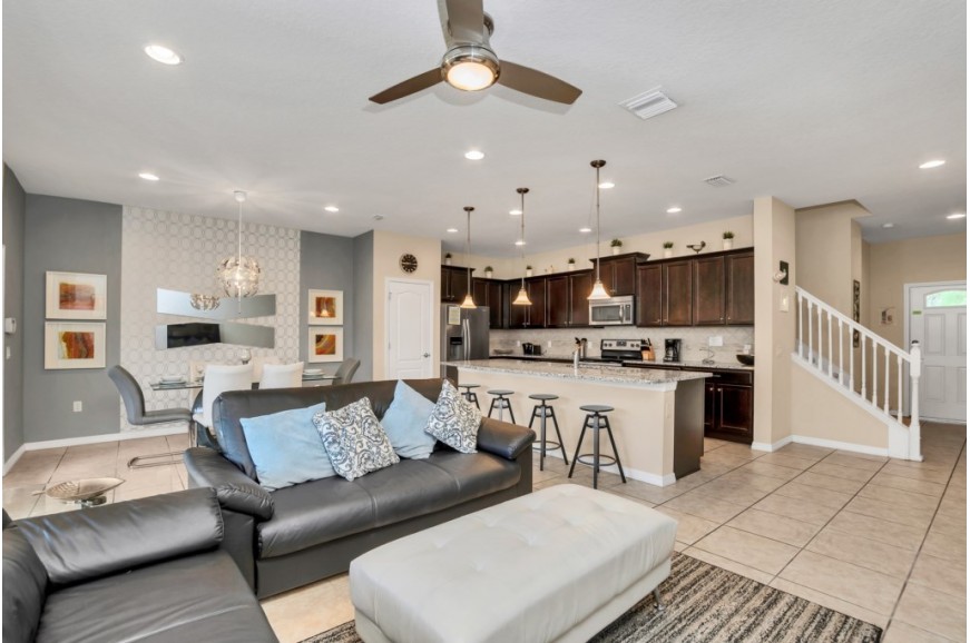 Windsor at Westside - Kissimmee, Florida is an upscale gated community located just 10 minutes from Walt Disney World. This luxury home sits nestled just outside of Orlando, Florida and has quickly become one of the most desired locations in the Orlando area. During your stay, you will enjoy this well-appointed home that has been designed and decorated to provide you and your family an abundance of luxury amenities and leaves you well equipped to vacation with all the usual items you would expect to find at home. Windsor at Westside is only a 30-minute drive from the Orlando International Airport and is situated central to all of Orlando’s famous attractions. This spacious 4 bedroom holiday villa can comfortably accommodate a larger family or group of up to 8 people.
