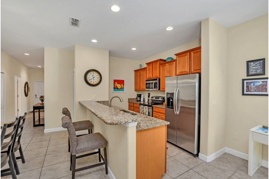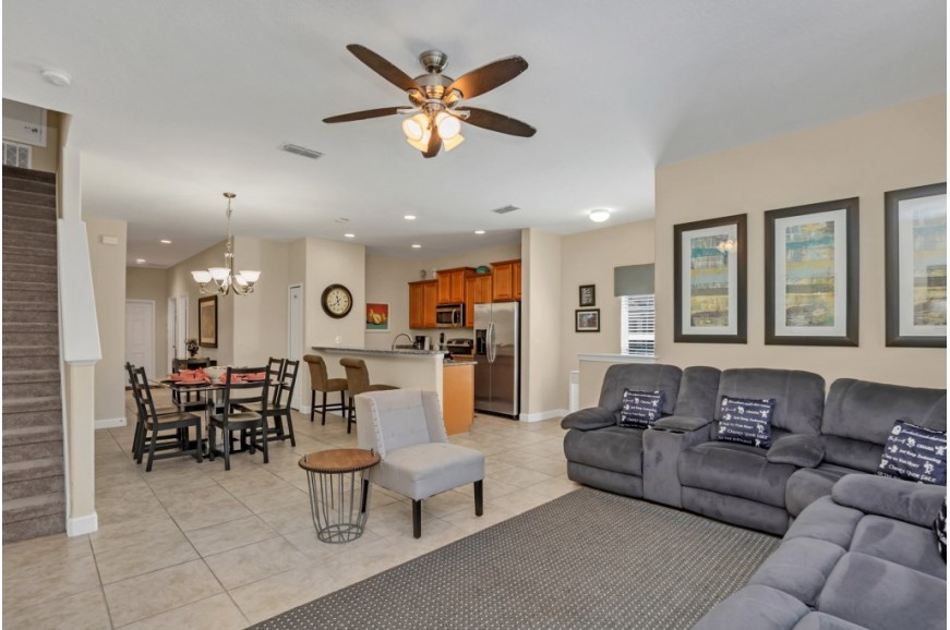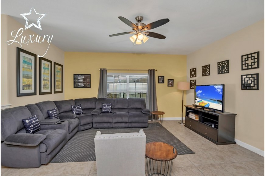 Paradise Palms - Kissimmee, Florida is an upscale gated community located just 5 miles from Walt Disney World. This luxury resort sits nestled just off Hwy 192 in Kissimmee, Florida, and is one of the most desired resorts in the Orlando area. During your stay, you will enjoy this well-appointed home that has been designed and decorated to provide you and your family an abundance of luxury amenities and leaves you well equipped to vacation with all the usual items you would expect to find at home. Paradise Palms Resort is only a 25-minute drive from the Orlando International Airport and is situated central to all of Orlando’s famous attractions. The resort's amenities include a gated community, a water park with Olympic Size Swimming Pool, fountains, waterslides, spa, separate toddler pool, tennis courts, volleyball, and children’s park and clubhouse. The Clubhouse has pool tables, ping-pong tables, a video games area, a sundry shop, a fitness room with top-of-the-line fitness equipment, and a high-definition surround sound movie theater. There are other outdoor recreational activities all surrounding the double Olympic-size heated swimming pool creating a relaxing, playful atmosphere for the entire family! Paradise Palms has all the amenities of a five-star hotel or resort, but with the comfort, convenience, and privacy of a private home. This spacious 5 bedroom holiday villa can comfortably accommodate a larger family or group of up to 10 people.