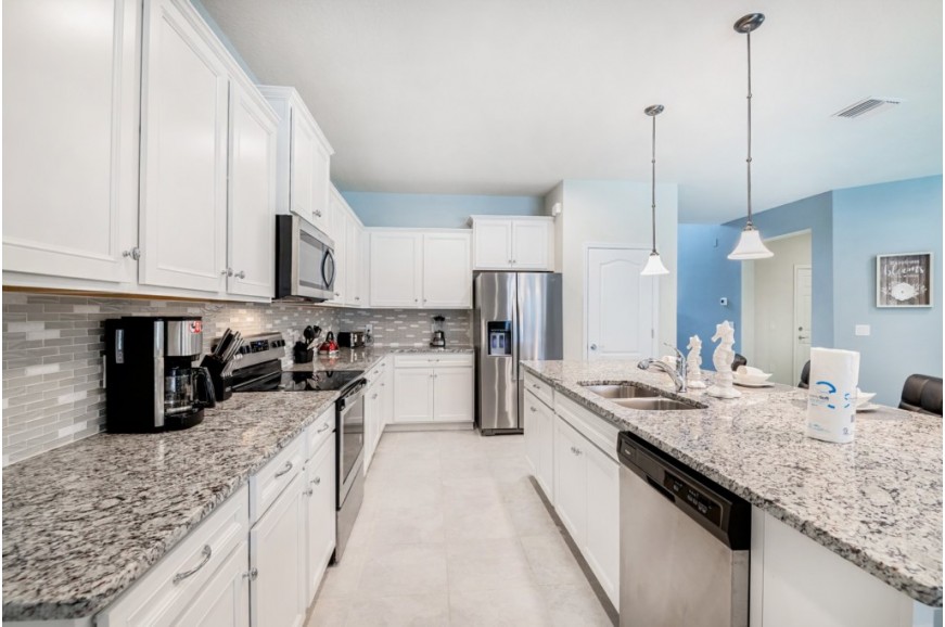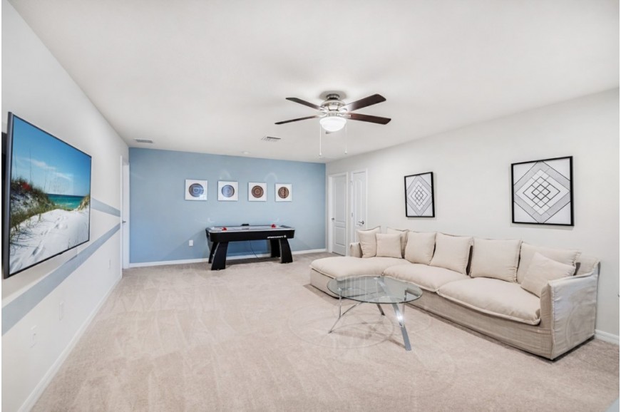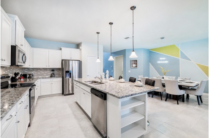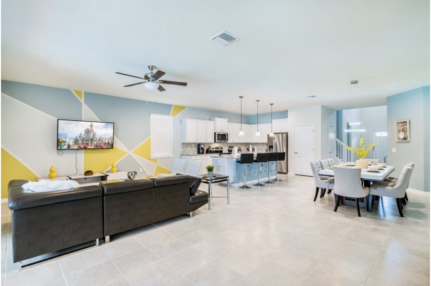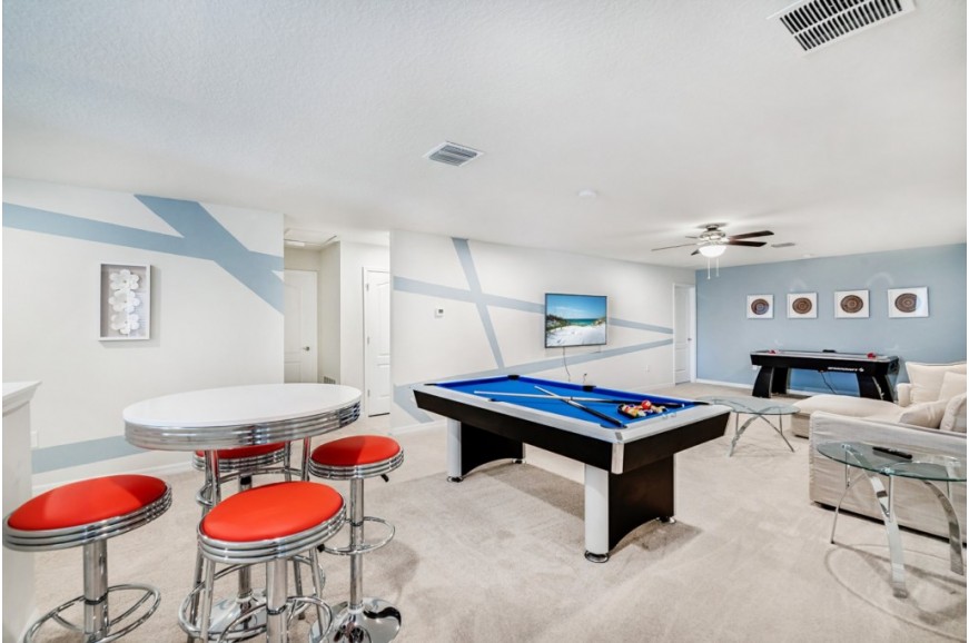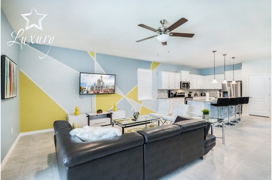 Windsor at Westside - Kissimmee, Florida is an upscale gated community located just 10 minutes from Walt Disney World. This luxury home sits nestled just outside of Orlando, Florida, and has quickly become one of the most desired locations in the Orlando area. During your stay, you will enjoy this well-appointed home that has been designed and decorated to provide you and your family an abundance of luxury amenities and leave you well equipped to vacation with all the usual items you would expect to find at home. Windsor at Westside is only a 30-minute drive from the Orlando International Airport and is situated central to all of Orlando’s famous attractions. This spacious 8 bedroom holiday villa can comfortably accommodate a larger family or group of up to 16 people.
