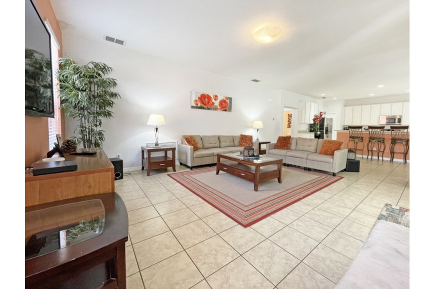 Bella Vida - Kissimmee, Florida is an upscale gated community located just 7 miles from Walt Disney World. This luxury resort sits nestled just off Hwy 192 in Kissimmee, Florida, and is one of the most desired resorts in the Orlando area. During your stay, you will enjoy this well-appointed home that has been designed and decorated to provide you and your family with an abundance of luxury amenities and leave you well-equipped to vacation with all the usual items you would expect to find at home. Bella Vida Resort is only a 25-minute drive from the Orlando International Airport and is situated central to all of Orlando’s famous attractions. The resort amenities include a gated community, a clubhouse with over 6700 square feet, a community pool, over 15 acres of lakes, a cyber cafe, an arcade, basketball, volley Ball, gathering room with television, fitness room, walking trails, picnic area, tot lot playground, bocce ball, and Italian gardens. The community pool is not heated. Bella Vida has all the amenities of a five-star hotel or resort but with the comfort, convenience, and privacy of a private home. This spacious 6-bedroom holiday villa can comfortably accommodate a larger family or group of up to 12 people.