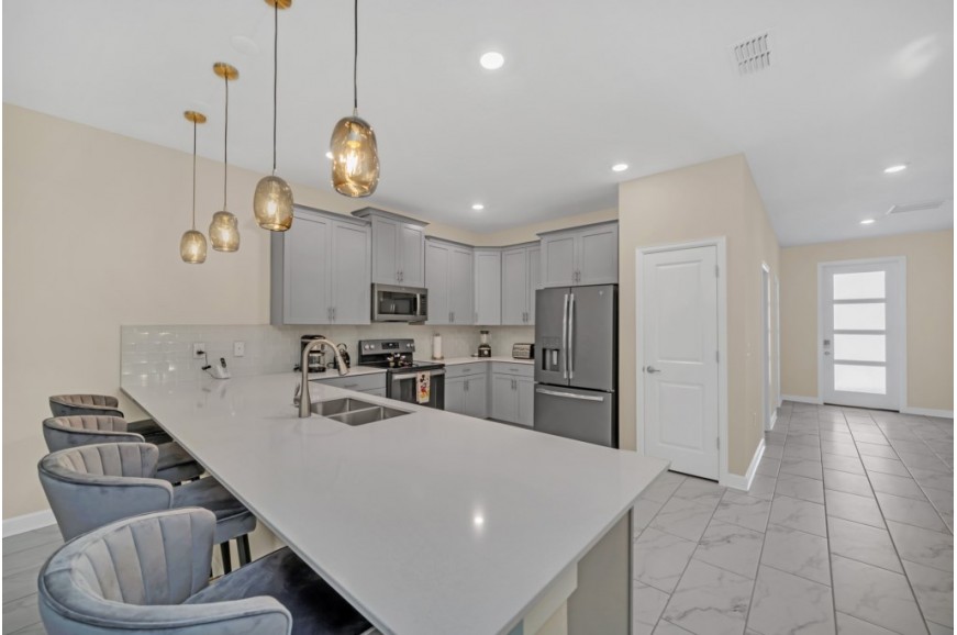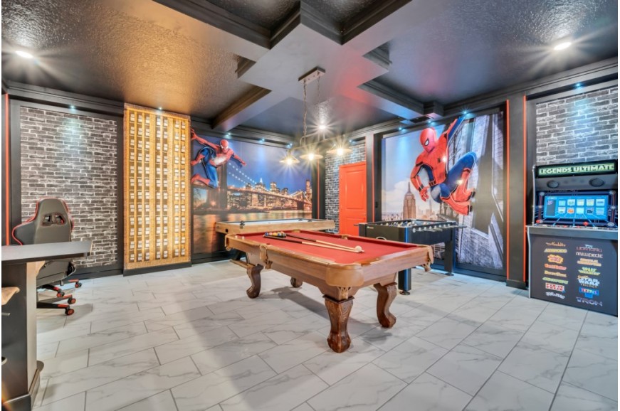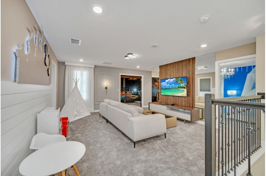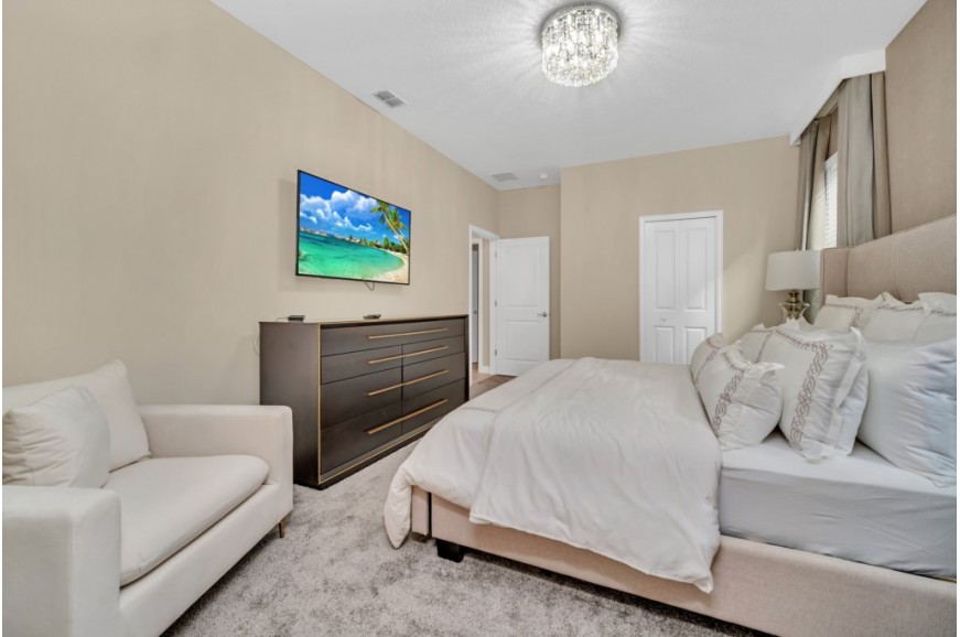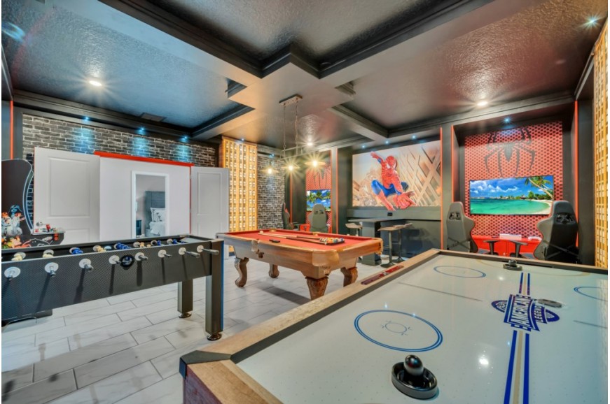 Storey Lake - Kissimmee, Florida is a brand new vacation community located just 4 miles from the magical world of Disney and just minutes to Universal, Sea World and the many water parks in the area. Central Florida is also home to some of the nation's top-rated golf courses and many are within a 10-minute drive of Storey Lake. The prime location lends itself to the premier shopping corridor including the famed Millennia, top restaurants and the world-renowned town of Celebration inspired by Disney. Storey Lake is also a 30-minute drive from the Orlando International Airport. The resort offers the best in family fun and is host to a wide variety of amenities and activities. This spacious 9 bedroom holiday villa can comfortably accommodate a large family or group of up to 18 guests.