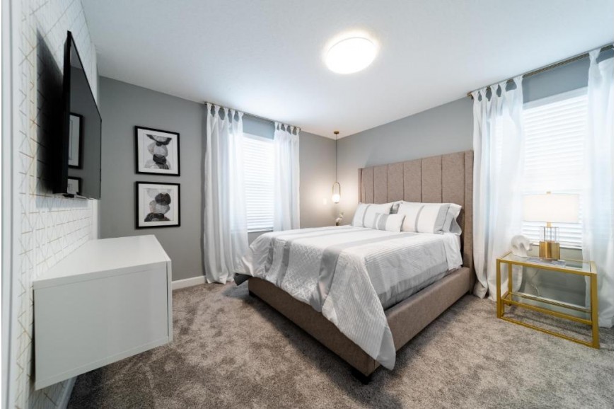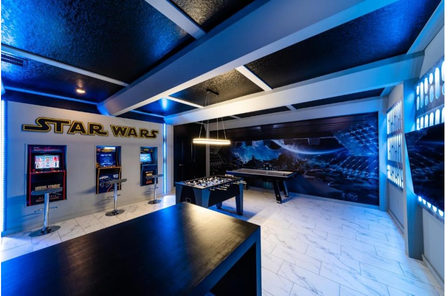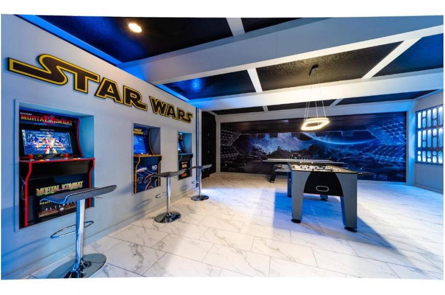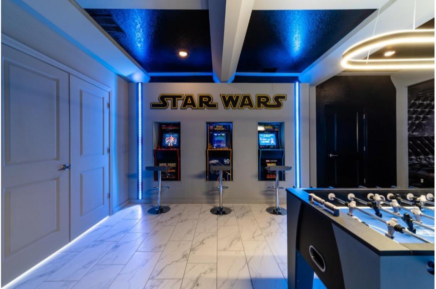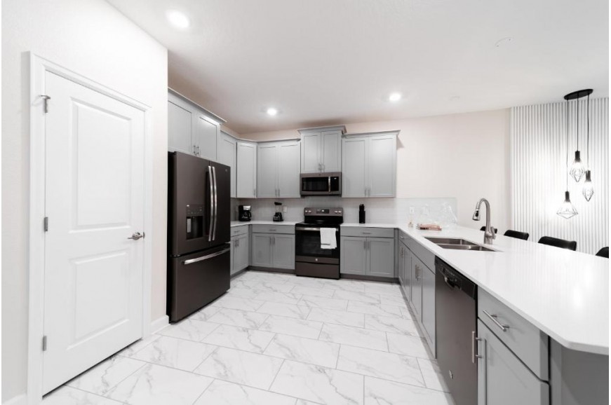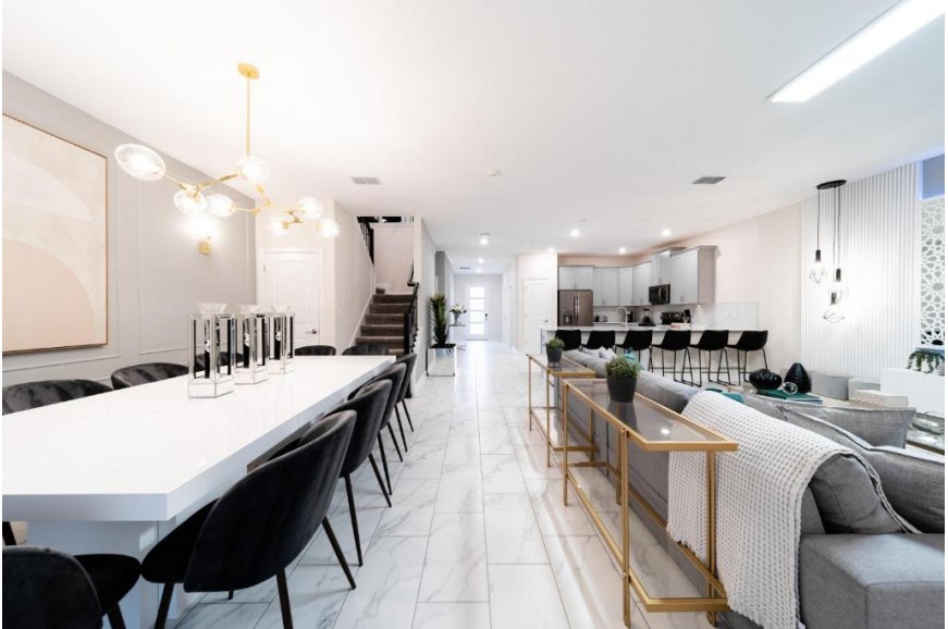 Storey Lake - Kissimmee is a brand new vacation community located just 4 miles from the magical world of Disney and just minutes to Universal, Sea World, and the many water parks in the area. Central Florida is also home to some of the nation's top-rated golf courses and many are within a 10-minute drive of Storey Lake. The prime location lends itself to the premier shopping corridor including the famed Millennia, top restaurants, and the world-renowned town of Celebration inspired by Disney. Storey Lake is also a 30-minute drive from the Orlando International Airport. The resort offers the best in family fun and is host to a wide variety of amenities and activities. This spacious 9 bedroom holiday villa can comfortably accommodate a large family or group of up to 18 guests.