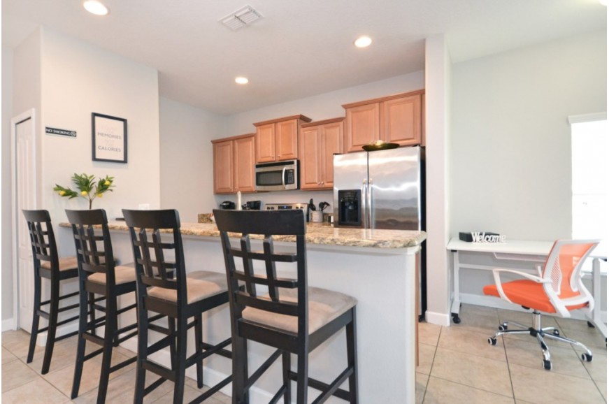 Paradise Palms - Kissimmee, Florida is an upscale gated community located just 5 miles from Walt Disney World. This luxury resort sits nestled just off Hwy 192 in Kissimmee, Florida, and is one of the most desired resorts in the Orlando area. During your stay, you will enjoy this well-appointed home that has been designed and decorated to provide you and your family with an abundance of luxury amenities and leaves you well-equipped to vacation with all the usual items you would expect to find at home. Paradise Palms Resort is only a 25-minute drive from the Orlando International Airport and is situated central to all of Orlando’s famous attractions. The resort's amenities include a gated community, a water park with an Olympic-size swimming Pool, fountains, waterslides, a spa, a separate toddler pool, tennis courts, volleyball, and a children’s park and clubhouse. The Clubhouse has pool tables, ping-pong tables, a video games area, a sundry shop, a fitness room with top-of-the-line fitness equipment, and a high-definition surround sound movie theater. There are other outdoor recreational activities all surrounding the double Olympic-size heated swimming pool creating a relaxing, playful atmosphere for the entire family! Paradise Palms has all the amenities of a five-star hotel or resort but with the comfort, convenience, and privacy of a private home. This spacious 5-bedroom holiday villa can comfortably accommodate a larger family or group of up to 10 people.