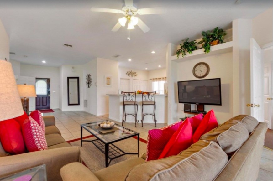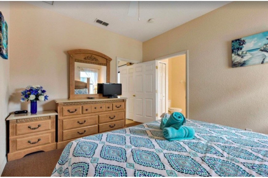 High Grove - Clermont, Florida is an upscale gated community located just 15 minutes from Walt Disney World. This luxury resort sits nestled just outside of Orlando, Florida, and has quickly become one of the most desired resorts in the Orlando area. During your stay, you will enjoy this well-appointed home that has been designed and decorated to provide you and your family with an abundance of luxury amenities and leaves you well-equipped to vacation with all the usual items you would expect to find at home. High Grove Resort is only a 30-minute drive from the Orlando International Airport and is situated central to all of Orlando’s famous attractions. The resort amenities include a gated community, swimming pool, Jacuzzi fitness room, business center, children's playground, guest lounge, and game room. This spacious 4-bedroom holiday villa can comfortably accommodate a larger family or group of up to 8 people.