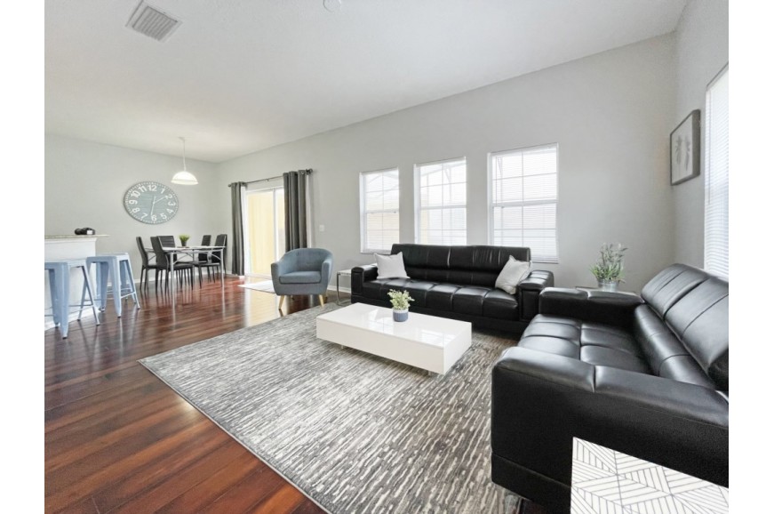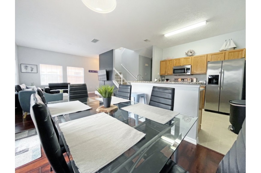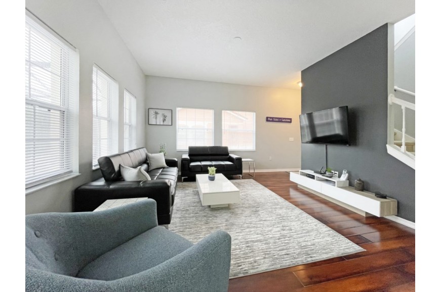Terra Verde - Kissimmee, Florida is an upscale gated community located just 8 miles from Walt Disney World. This luxury resort sits nestled just off Hwy 192 in Kissimmee, Florida, and is one of the most desired resorts in the Orlando area. During your stay, you will enjoy this well-appointed home that has been designed and decorated to provide you and your family with an abundance of luxury amenities and leaves you well-equipped to vacation with all the usual items you would expect to find at home. Terra Verde Resort is only a 25-minute drive from the Orlando International Airport and is situated central to all of Orlando’s famous attractions. The resort's amenities include a gated community, an Olympic-size swimming pool, fountains, waterslides, a spa, a separate toddler pool, basketball courts, volleyball, a children’s park, and a clubhouse. The Clubhouse has pool tables, a fitness area, a video games area, and a spa. There are other outdoor recreational activities all surrounding the Olympic-size heated swimming pool creating a relaxing, playful atmosphere for the entire family! Terra Verde has all the amenities of a five-star hotel or resort with the comfort, convenience, and privacy of a private home. This spacious 4-bedroom townhome can comfortably accommodate a larger family or group of up to 8 people.