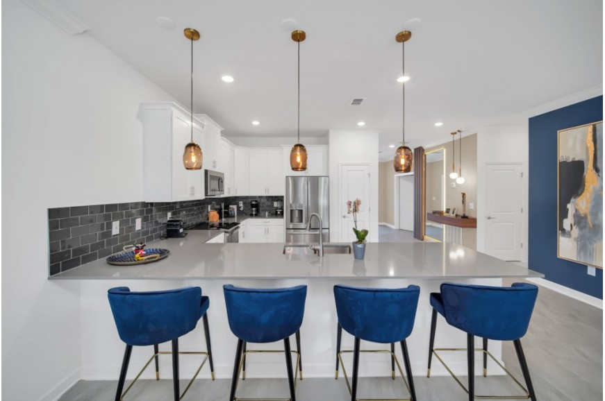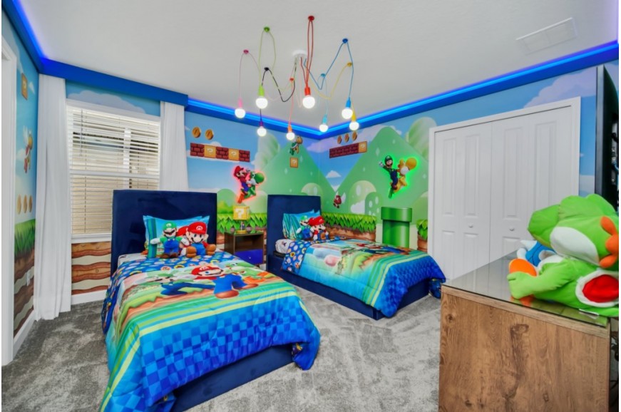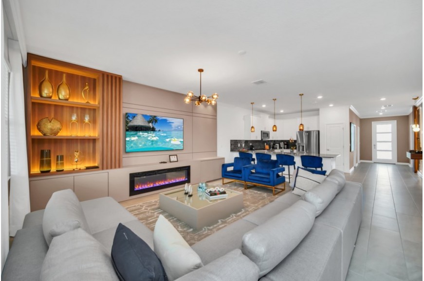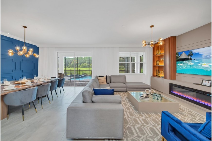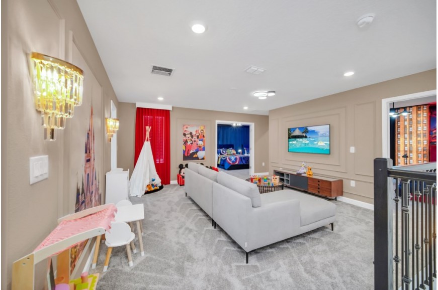 Storey Lake - Kissimmee, Florida is a brand new vacation community located just 4 miles from the magical world of Disney and just minutes to Universal, Sea World, and the many water parks in the area. Central Florida is also home to some of the nation's top-rated golf courses and many are within a 10-minute drive of Storey Lake. The prime location lends itself to the premier shopping corridor including the famed Millennia, top restaurants, and the world-renowned town of Celebration inspired by Disney.  Storey Lake is also a 30-minute drive from the Orlando International Airport. The resort offers the best in family fun and is host to a wide variety of amenities and activities. This spacious 9 bedroom holiday villa can comfortably accommodate a large family or group of up to 18 guests.