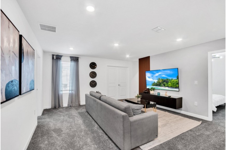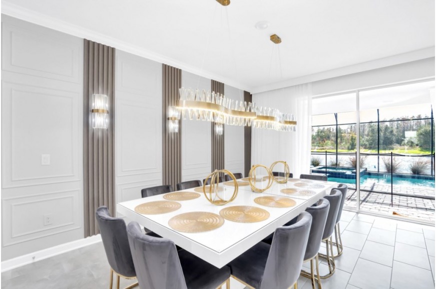 Storey Lake - Kissimmee, Florida is a brand new vacation community located just 4 miles from the magical world of Disney and just minutes to Universal, Sea World, and the many water parks in the area. Central Florida is also home to some of the nation's top-rated golf courses and many are within a 10-minute drive of Storey Lake. The prime location lends itself to the premier shopping corridor including the famed Millennia, top restaurants, and the world-renowned town of Celebration inspired by Disney.  Storey Lake is also a 30-minute drive from the Orlando International Airport. The resort offers the best in family fun and is host to a wide variety of amenities and activities. This spacious 9 bedroom holiday villa can comfortably accommodate a large family or group of up to 18 guests.