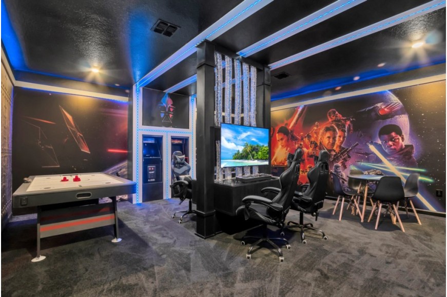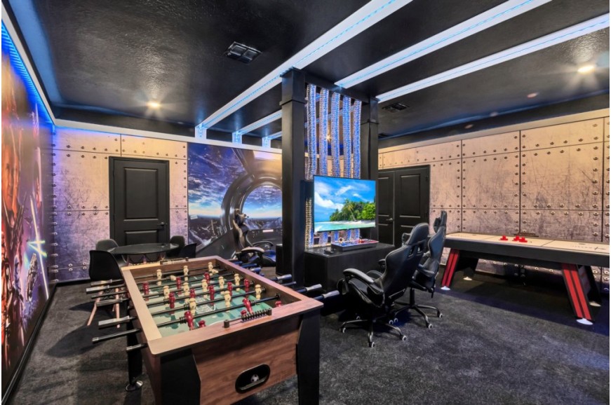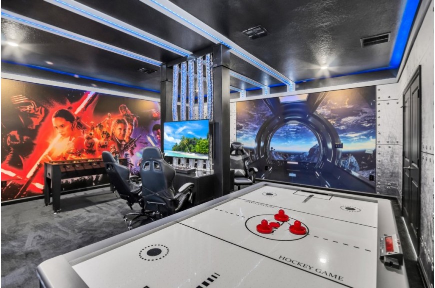 • Game Room with Pool Table, Air Hockey, Foosball, and Gaming Area