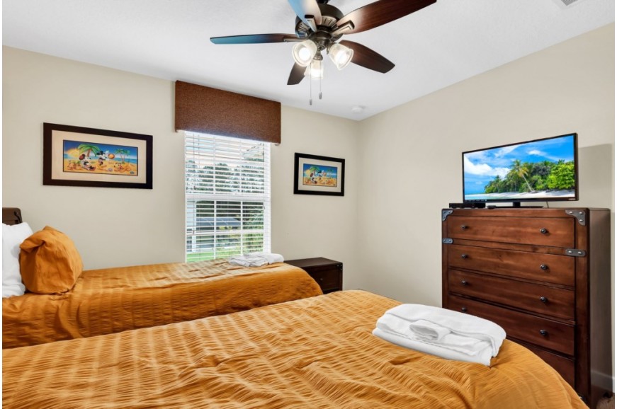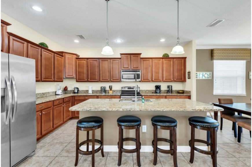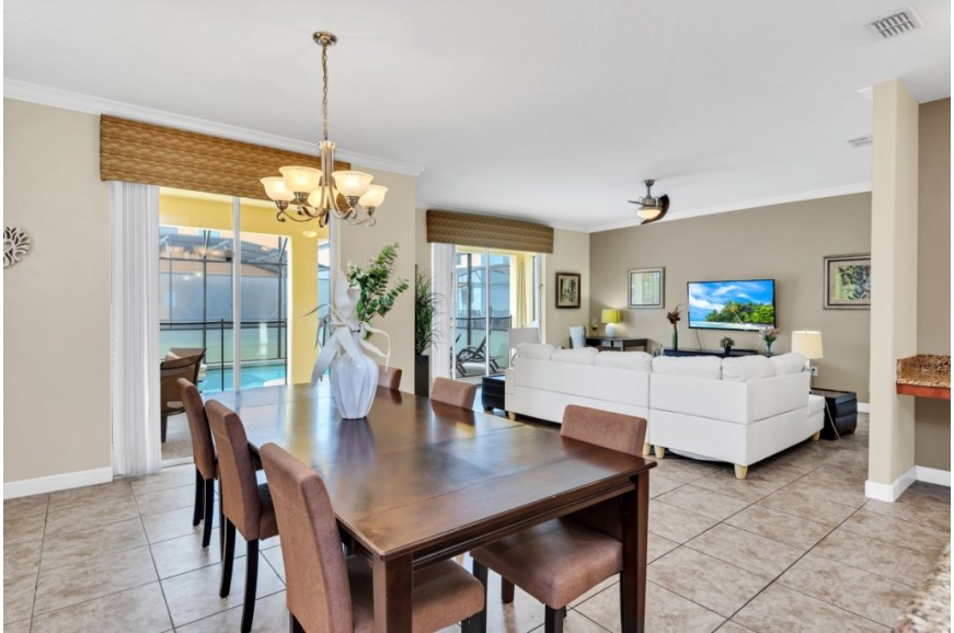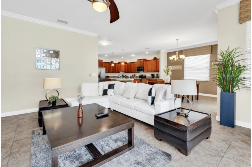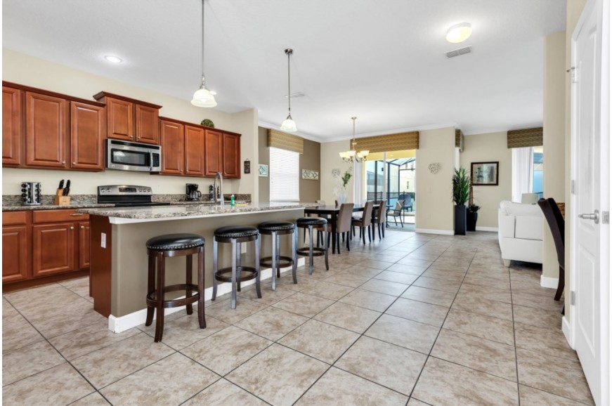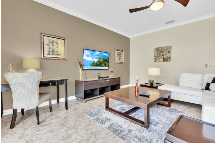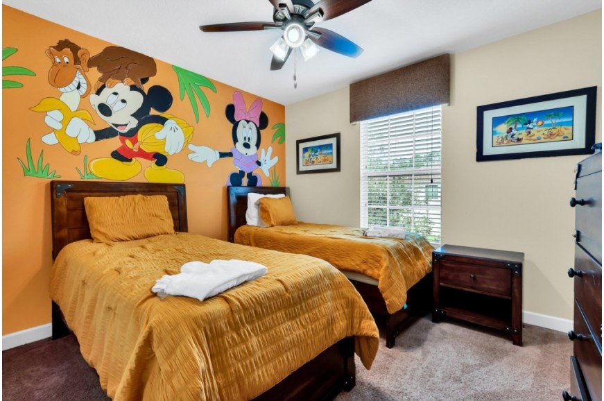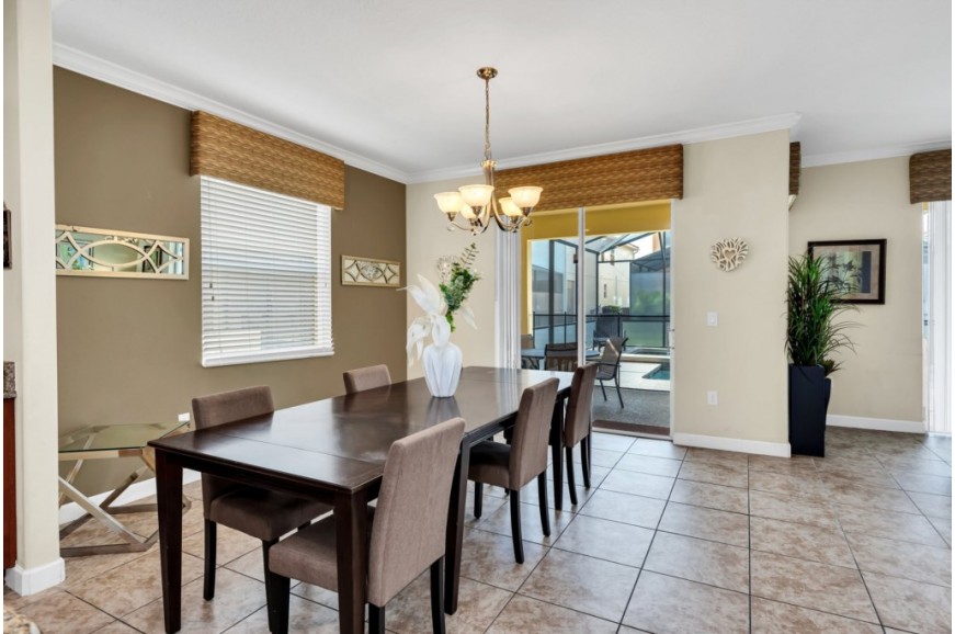 Paradise Palms - Kissimmee, Florida is an upscale gated community located just 5 miles from Walt Disney World. This luxury resort sits nestled just off Hwy 192 in Kissimmee, Florida, and is one of the most desired resorts in the Orlando area. During your stay, you will enjoy this well-appointed home that has been designed and decorated to provide you and your family an abundance of luxury amenities and leaves you well equipped to vacation with all the usual items you would expect to find at home. Paradise Palms Resort is only a 25-minute drive from the Orlando International Airport and is situated central to all of Orlando’s famous attractions. The resort's amenities include a gated community, a water park with Olympic Size Swimming Pool, fountains, waterslides, spa, separate toddler pool, tennis courts, volleyball, and children’s park and clubhouse. The Clubhouse has pool tables, ping-pong tables, a video games area, a sundry shop, a fitness room with top-of-the-line fitness equipment, and a high-definition surround sound movie theater. There are other outdoor recreational activities all surrounding the double Olympic-size heated swimming pool creating a relaxing, playful atmosphere for the entire family! Paradise Palms has all the amenities of a five-star hotel or resort, but with the comfort, convenience, and privacy of a private home. This spacious 6 bedroom holiday villa can comfortably accommodate a larger family or group of up to 12 people.