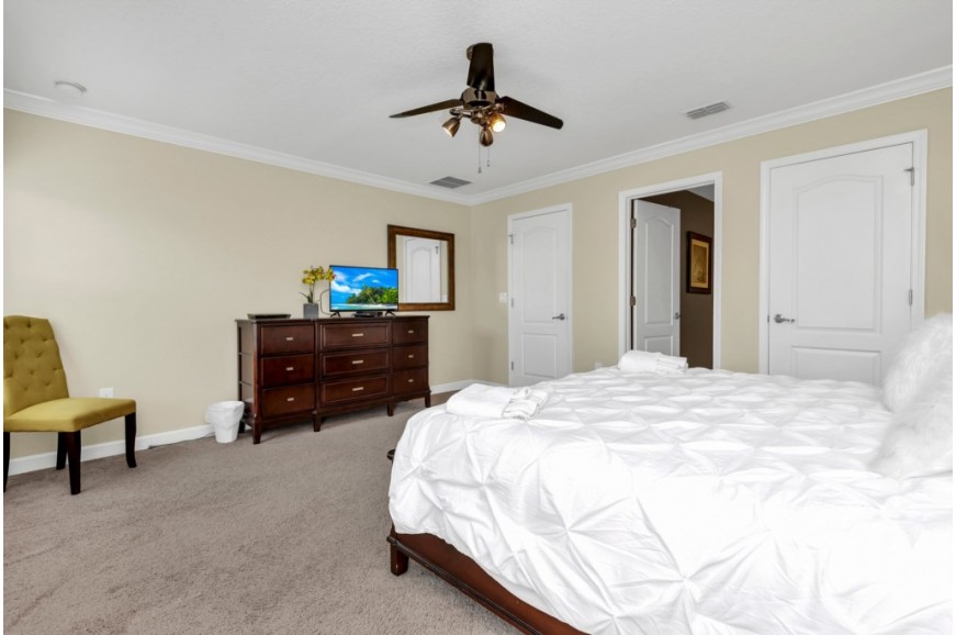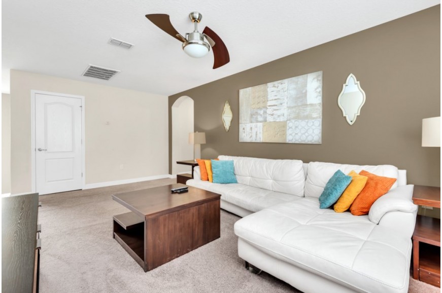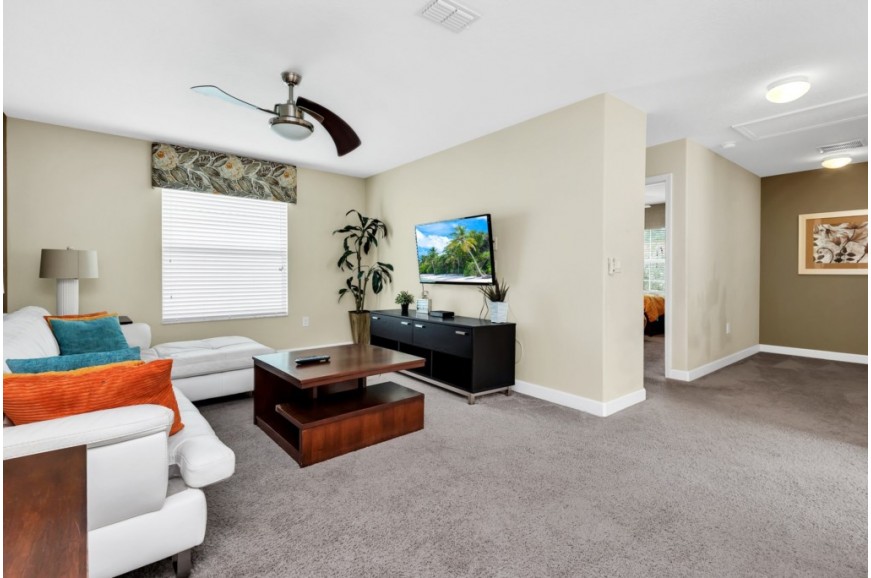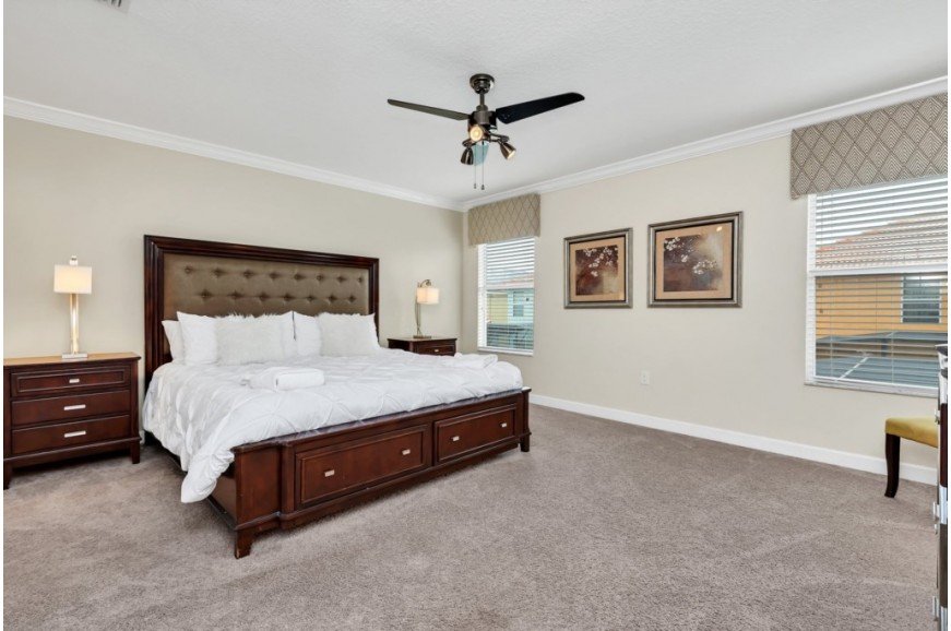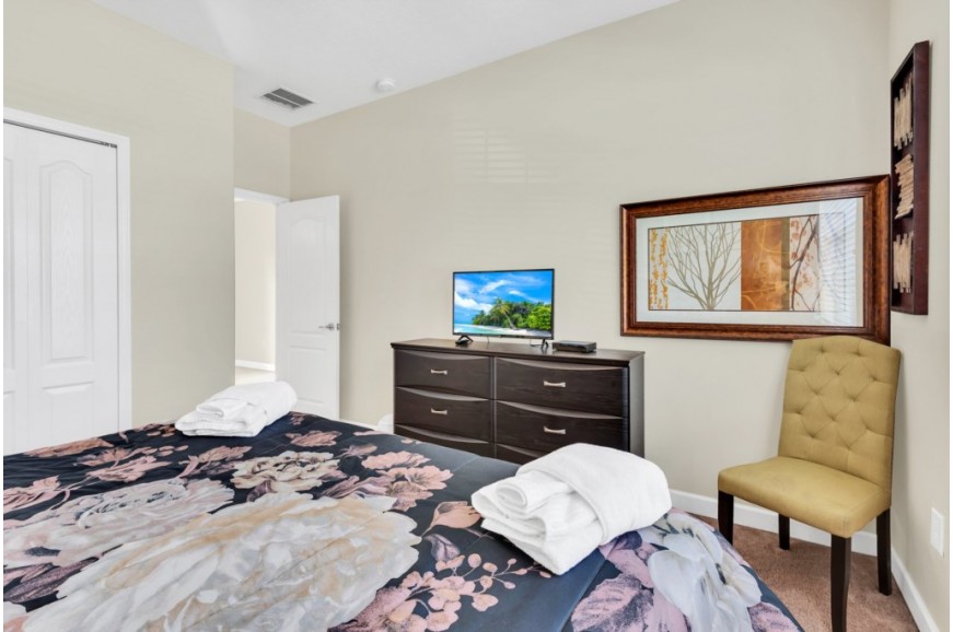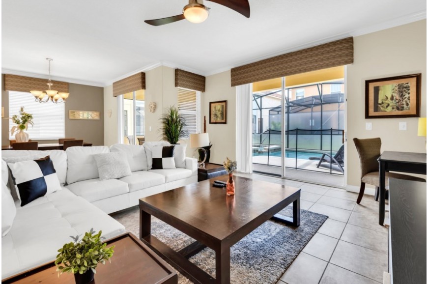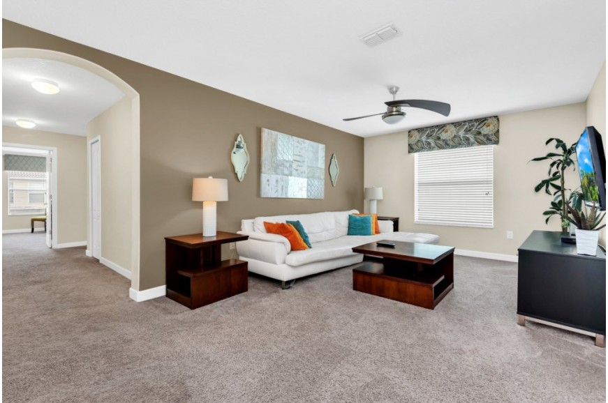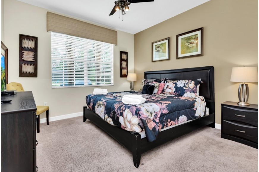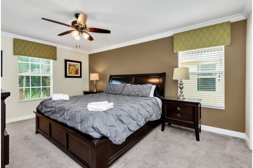 Paradise Palms - Kissimmee, Florida is an upscale gated community located just 5 miles from Walt Disney World. This luxury resort sits nestled just off Hwy 192 in Kissimmee, Florida, and is one of the most desired resorts in the Orlando area. During your stay, you will enjoy this well-appointed home that has been designed and decorated to provide you and your family an abundance of luxury amenities and leaves you well equipped to vacation with all the usual items you would expect to find at home. Paradise Palms Resort is only a 25-minute drive from the Orlando International Airport and is situated central to all of Orlando’s famous attractions. The resort's amenities include a gated community, a water park with Olympic Size Swimming Pool, fountains, waterslides, spa, separate toddler pool, tennis courts, volleyball, and children’s park and clubhouse. The Clubhouse has pool tables, ping-pong tables, a video games area, a sundry shop, a fitness room with top-of-the-line fitness equipment, and a high-definition surround sound movie theater. There are other outdoor recreational activities all surrounding the double Olympic-size heated swimming pool creating a relaxing, playful atmosphere for the entire family! Paradise Palms has all the amenities of a five-star hotel or resort, but with the comfort, convenience, and privacy of a private home. This spacious 6 bedroom holiday villa can comfortably accommodate a larger family or group of up to 12 people.