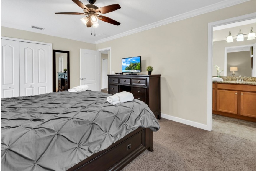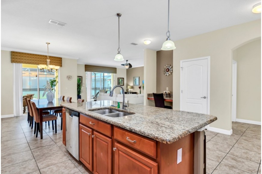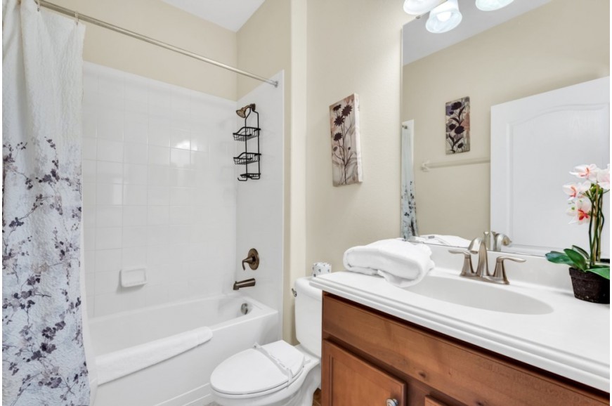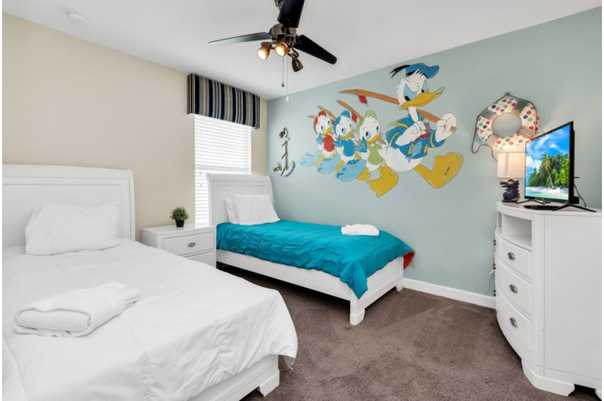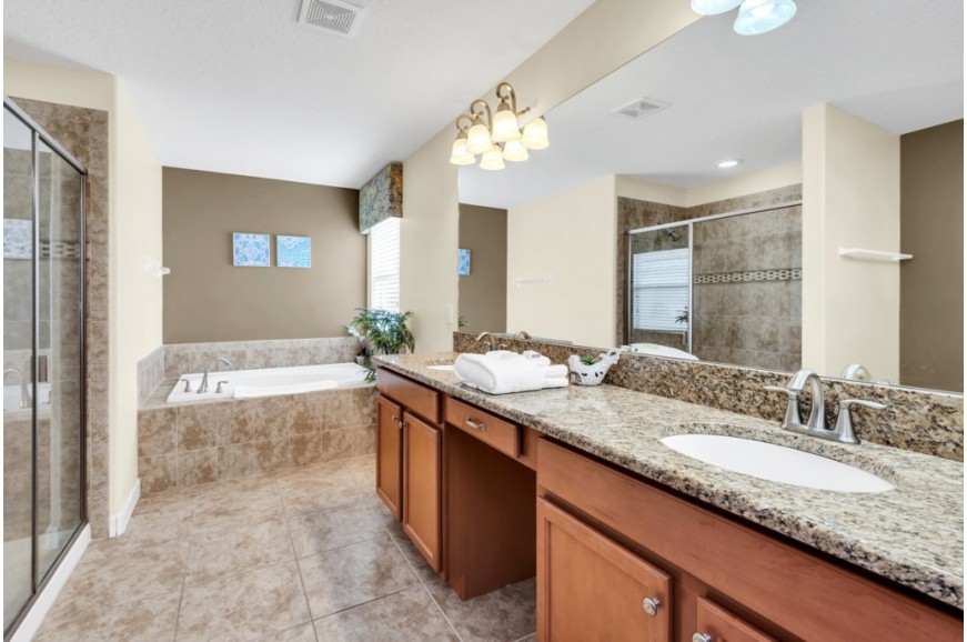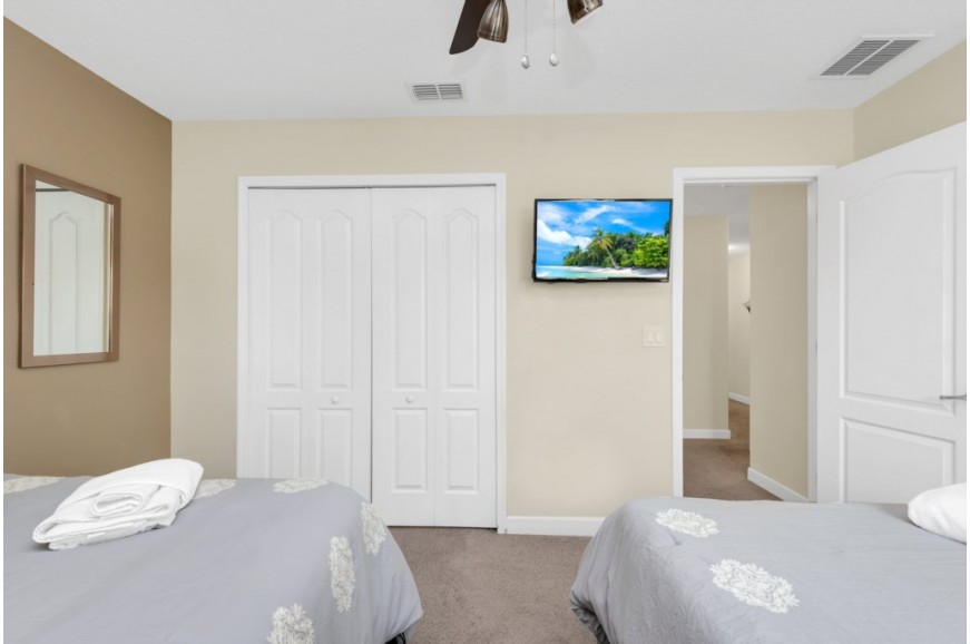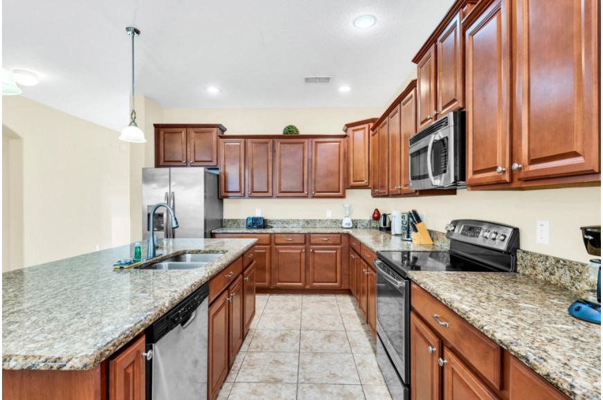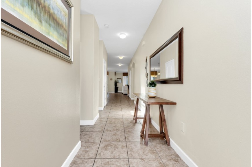 Paradise Palms - Kissimmee, Florida is an upscale gated community located just 5 miles from Walt Disney World. This luxury resort sits nestled just off Hwy 192 in Kissimmee, Florida, and is one of the most desired resorts in the Orlando area. During your stay, you will enjoy this well-appointed home that has been designed and decorated to provide you and your family an abundance of luxury amenities and leaves you well equipped to vacation with all the usual items you would expect to find at home. Paradise Palms Resort is only a 25-minute drive from the Orlando International Airport and is situated central to all of Orlando’s famous attractions. The resort's amenities include a gated community, a water park with Olympic Size Swimming Pool, fountains, waterslides, spa, separate toddler pool, tennis courts, volleyball, and children’s park and clubhouse. The Clubhouse has pool tables, ping-pong tables, a video games area, a sundry shop, a fitness room with top-of-the-line fitness equipment, and a high-definition surround sound movie theater. There are other outdoor recreational activities all surrounding the double Olympic-size heated swimming pool creating a relaxing, playful atmosphere for the entire family! Paradise Palms has all the amenities of a five-star hotel or resort, but with the comfort, convenience, and privacy of a private home. This spacious 6 bedroom holiday villa can comfortably accommodate a larger family or group of up to 12 people.