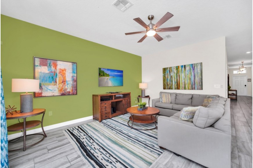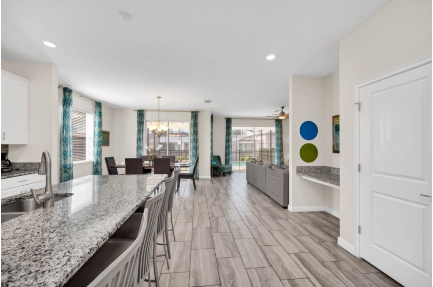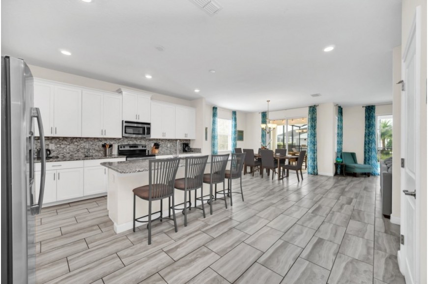 Storey Lake - Kissimmee, Florida is a brand new vacation community located just 4 miles from the magical world of Disney and just minutes to Universal, Sea World and the many water parks in the area. Central Florida is also home to some of the nation's top-rated golf courses and many are within a 10-minute drive of Storey Lake. The prime location lends itself to the premier shopping corridor including the famed Millennia, top restaurants and the world renowned town of Celebration inspired by Disney. Storey Lake is also a 30-minute drive from the Orlando International Airport. The resort offers the best in family fun and is host to a wide variety of amenities and activities. This spacious 6 bedroom holiday villa can comfortably accommodate a large family or group of up to 12 guests.