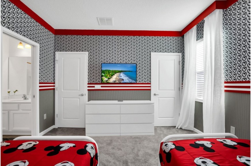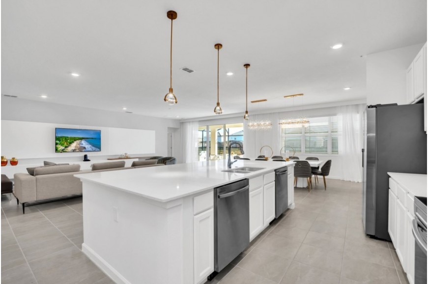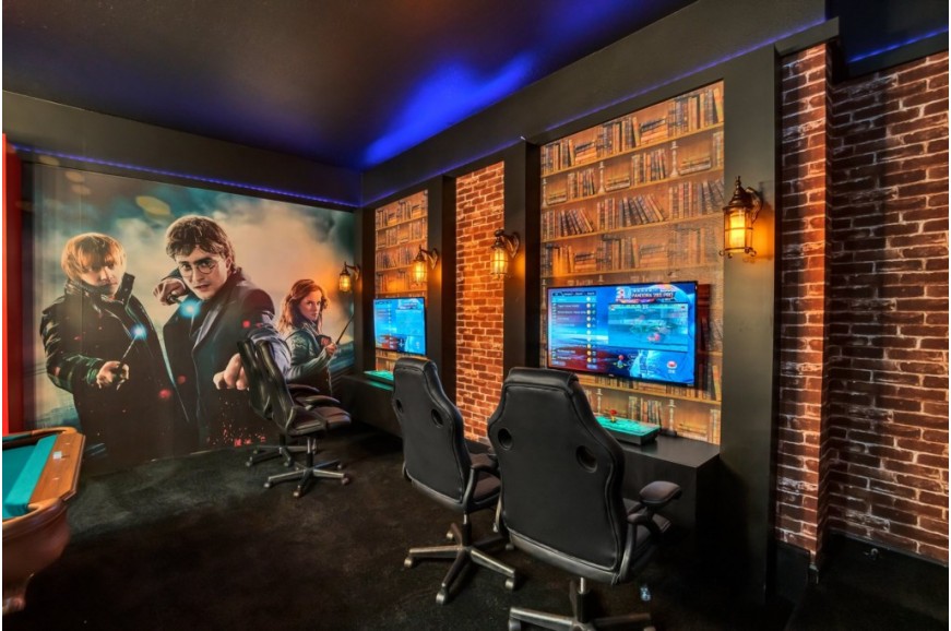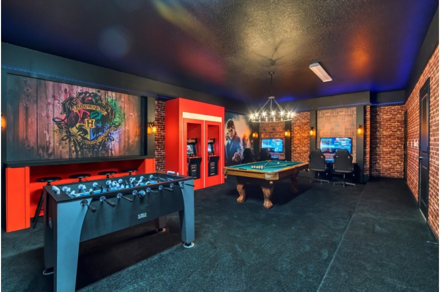 Veranda Palms Resort - Kissimmee, Florida is an upscale gated community located just 5 miles from Walt Disney World. This resort sits nestled just outside of Orlando, Florida, and has quickly become one of the most desired resorts in the Orlando area. During your stay, you will enjoy this well-appointed home that has been designed and decorated to provide you and your family with recreational amenities and leaves you well equipped to vacation with all the usual items you would expect to find at home. Veranda Palms Resort is only a 25-minute drive from the Orlando International Airport and is situated central to all of Orlando’s famous attractions. The resort amenities include a gated community, resort pool, children's water playground, clubhouse with fitness center, walking trails, and is next to the Shingle Lake Preserve. This spacious 15 bedroom holiday villa can comfortably accommodate a larger family or group of up to 30 people.