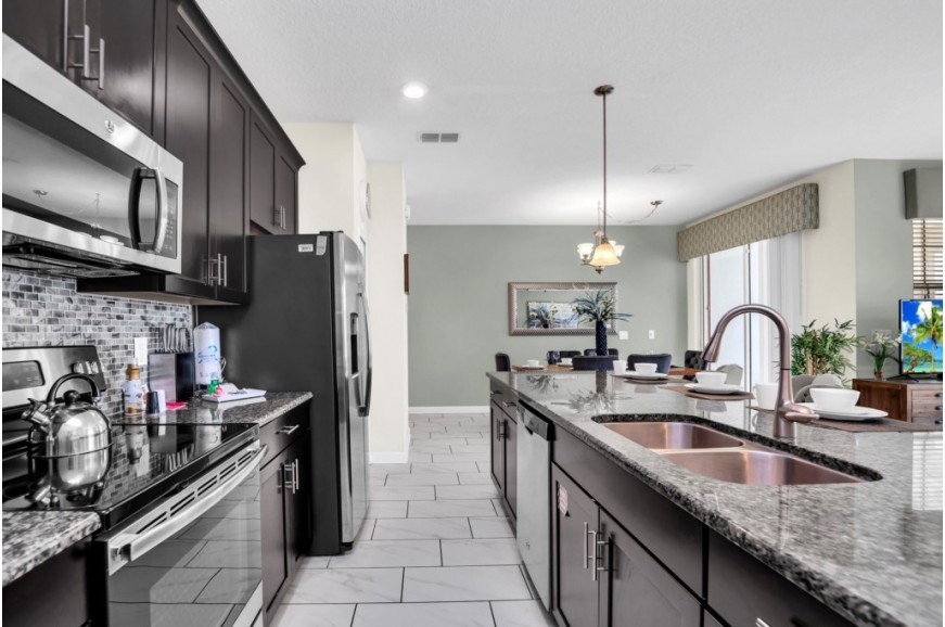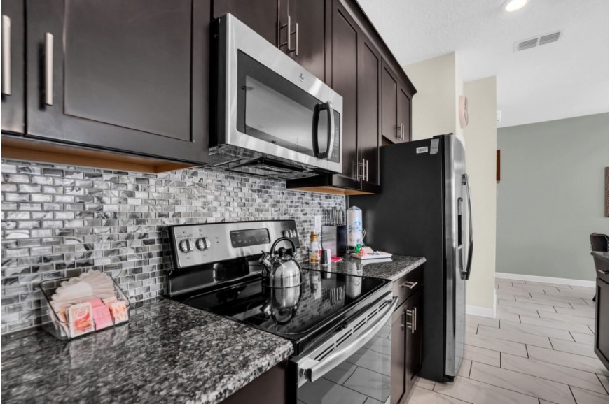 • Fully Equipped Kitchen with Granite Countertops and Stainless Steel Appliances