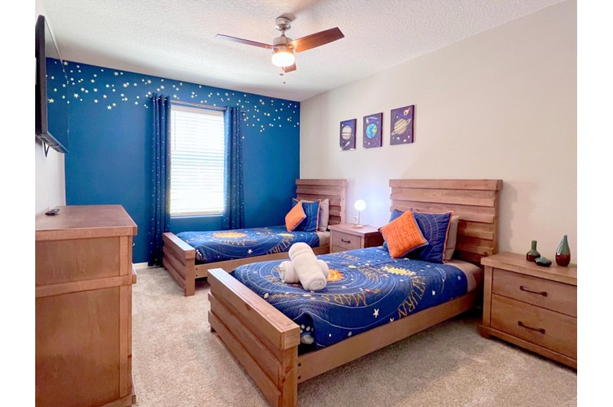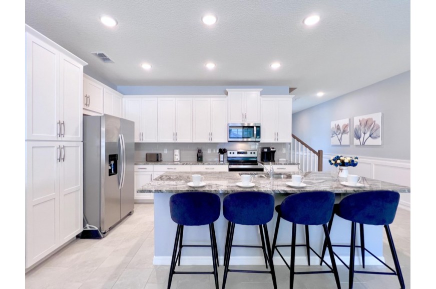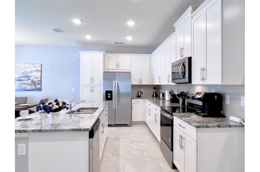 Solara Resort - Kissimmee, Florida is an upscale community currently under development just 7 miles from Walt Disney World. This gated resort community sits nestled just outside of Orlando, Florida. During your stay, you will enjoy this well-appointed home that has been designed and decorated to provide you and your family with an abundance of luxury amenities and leaves you well-equipped to vacation with all the usual items you would expect to find at home. The resort is only a 30-minute drive from the Orlando International Airport and is situated central to all of Orlando’s famous attractions. The resort boasts an expansive clubhouse that includes a grand pool, complete with a surfing simulator, cabanas, pool bar, children's playground, sand volleyball court, basketball court, and soccer field. Inside the clubhouse sits the lounge, bar & grill, fitness center, business center, and sundries store. This spacious 5-bedroom holiday villa can comfortably accommodate a larger family or group of up to 10 people.