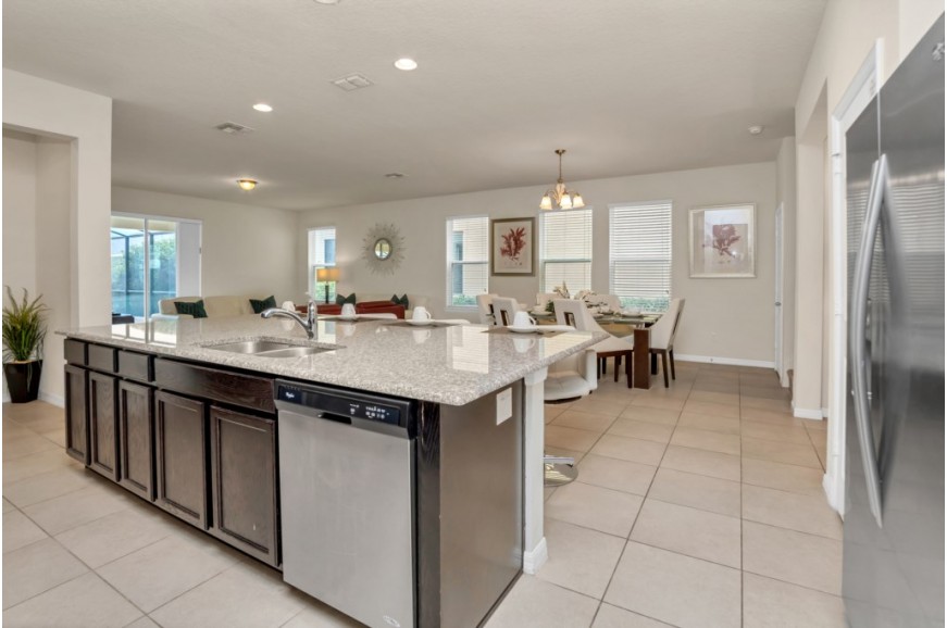 The Dales at West Haven - Davenport, Florida is an upscale gated community located just 10 miles from Walt Disney World. This luxury resort sits nestled just outside of Orlando, Florida and has quickly become one of the most desired resorts in the Orlando area. During your stay, you will enjoy this well-appointed home that has been designed and decorated to provide you and your family an abundance of luxury amenities and leaves you well equipped to vacation with all the usual items you would expect to find at home. The Dales at West Haven is only a 30-minute drive from the Orlando International Airport and is situated central to all if Orlando’s famous attractions. This spacious 6 bedroom holiday villa can comfortably accommodate a larger family or group of up to 12 people.