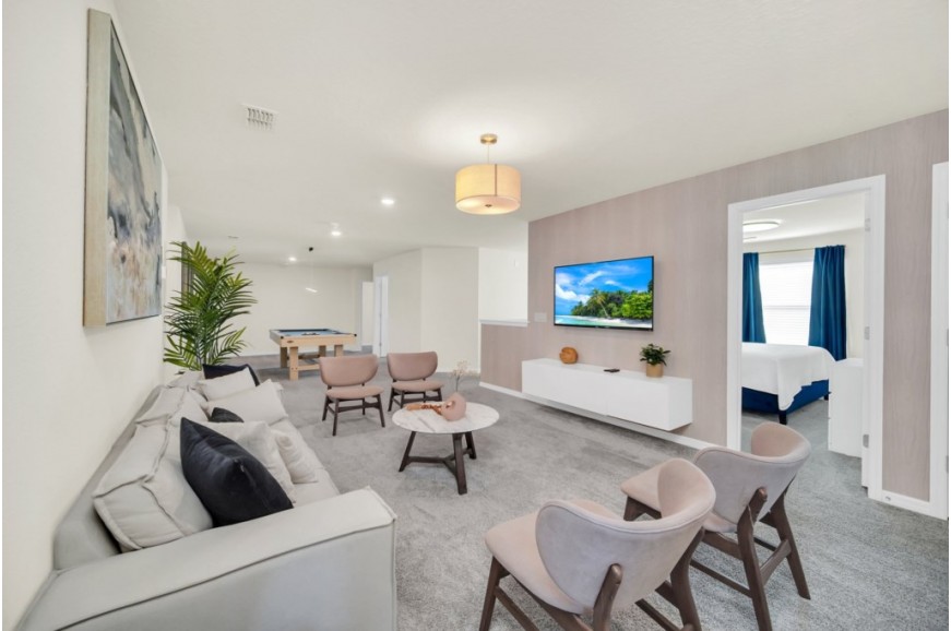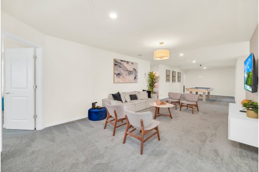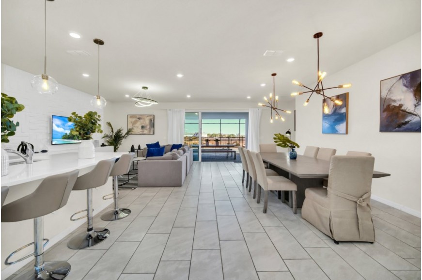 Windsor Island - Davenport, Florida is an upscale gated community located just 20-25 minutes from Walt Disney World. This luxury home sits nestled just outside of Orlando, Florida, and has quickly become one of the most desired locations in the Orlando area. During your stay, you will enjoy this well-appointed home that has been designed and decorated to provide you and your family an abundance of luxury amenities and leaves you well equipped to vacation with all the usual items you would expect to find at home. Windsor Island is only a 30-minute drive from the Orlando International Airport and is situated central to all of Orlando’s famous attractions. This spacious 10 bedroom holiday villa can comfortably accommodate a larger family or group of up to 20 people.