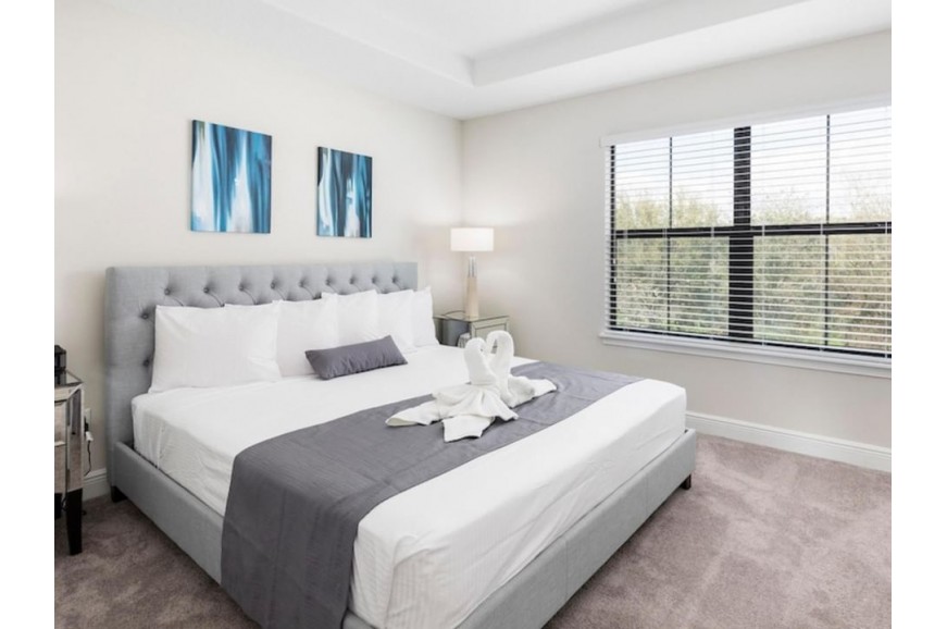 Balmoral Resort – Haines City, Florida is a resort paradise located close to all the Orlando theme parks in beautiful Haines City. The gated community resort offers both access to and a retreat from everything there is to see and do in Central Florida. During your stay you will enjoy this well-appointed home that has been designed and decorated to provide you and your family with an abundance of amenities and leaves you well equipped for a vacation with all the usual items you would expect to find at home. Hit the attractions nearby or stay close to home and enjoy resort-style amenities that include a clubhouse, arcade, fitness center, zero-entry swimming pool, waterslides, splash playground, and an on-site bar & grill. This spacious 4 bedroom holiday villa can comfortably accommodate a larger family or group of up to 8 people.