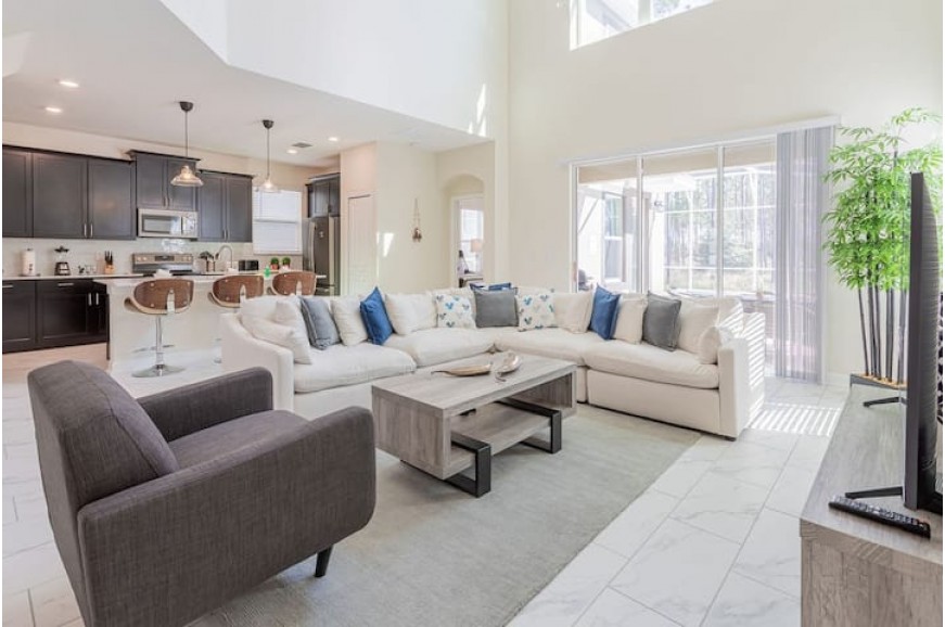 The Retreat at Champions Gate - Kissimmee, Florida is a new upscale gated resort community located just 12 miles from Walt Disney World. This luxury home sits nestled just outside of Orlando, Florida, and will quickly become one of the most desired locations in the Orlando area. During your stay, you will enjoy this well-appointed home that has been designed and decorated to provide you and your family an abundance of luxury amenities and leaves you well equipped to vacation with all the usual items you would expect to find at home. The Retreat at Champions Gate is only a 30-minute drive from the Orlando International Airport and is situated central to all of Orlando’s famous attractions. This spacious 5 bedroom holiday villa can comfortably accommodate a larger family or group of up to 10 people.