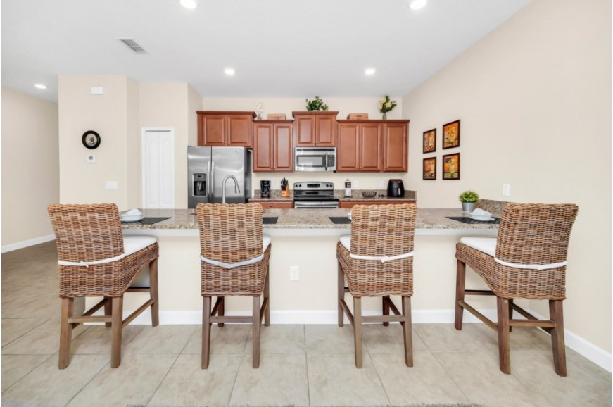 Storey Lake - Kissimmee, Florida is a brand new vacation community located just 4 miles from the magical world of Disney and just minutes to Universal, Sea World and the many water parks in the area. Central Florida is also home to some of the nation's top-rated golf courses and many are within a 10-minute drive of Storey Lake. The prime location lends itself to the premier shopping corridor including the famed Millennia, top restaurants and the world-renowned town of Celebration inspired by Disney.  Storey Lake is also a 30-minute drive from the Orlando International Airport. The resort offers the best in family fun and is host to a wide variety of amenities and activities. This spacious 4 bedroom townhome can comfortably accommodate a large family or group of up to 8 guests.